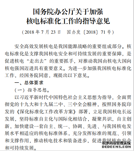 國務院辦公廳關于加強 核電標準化工作的指導意
