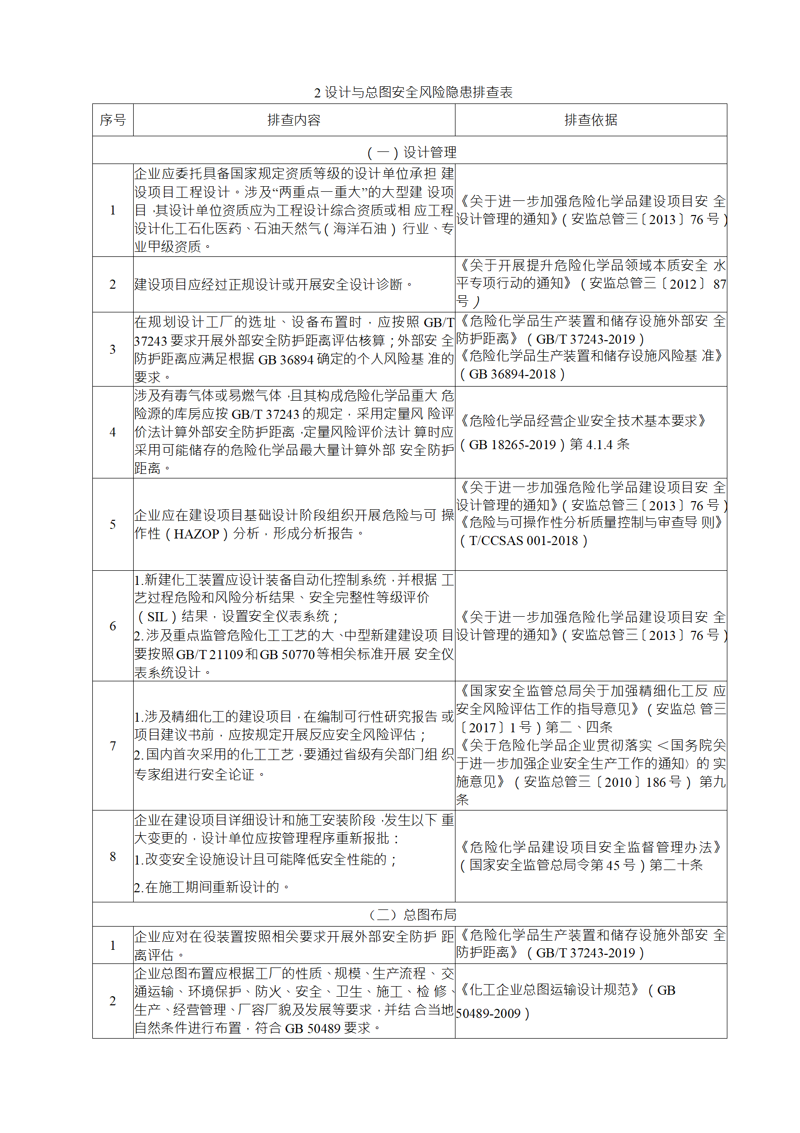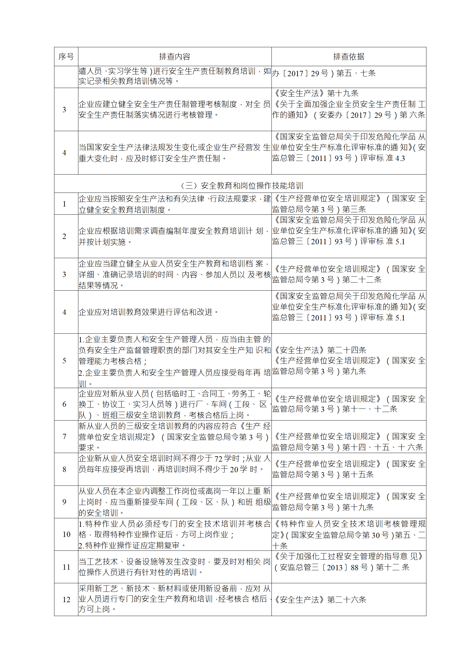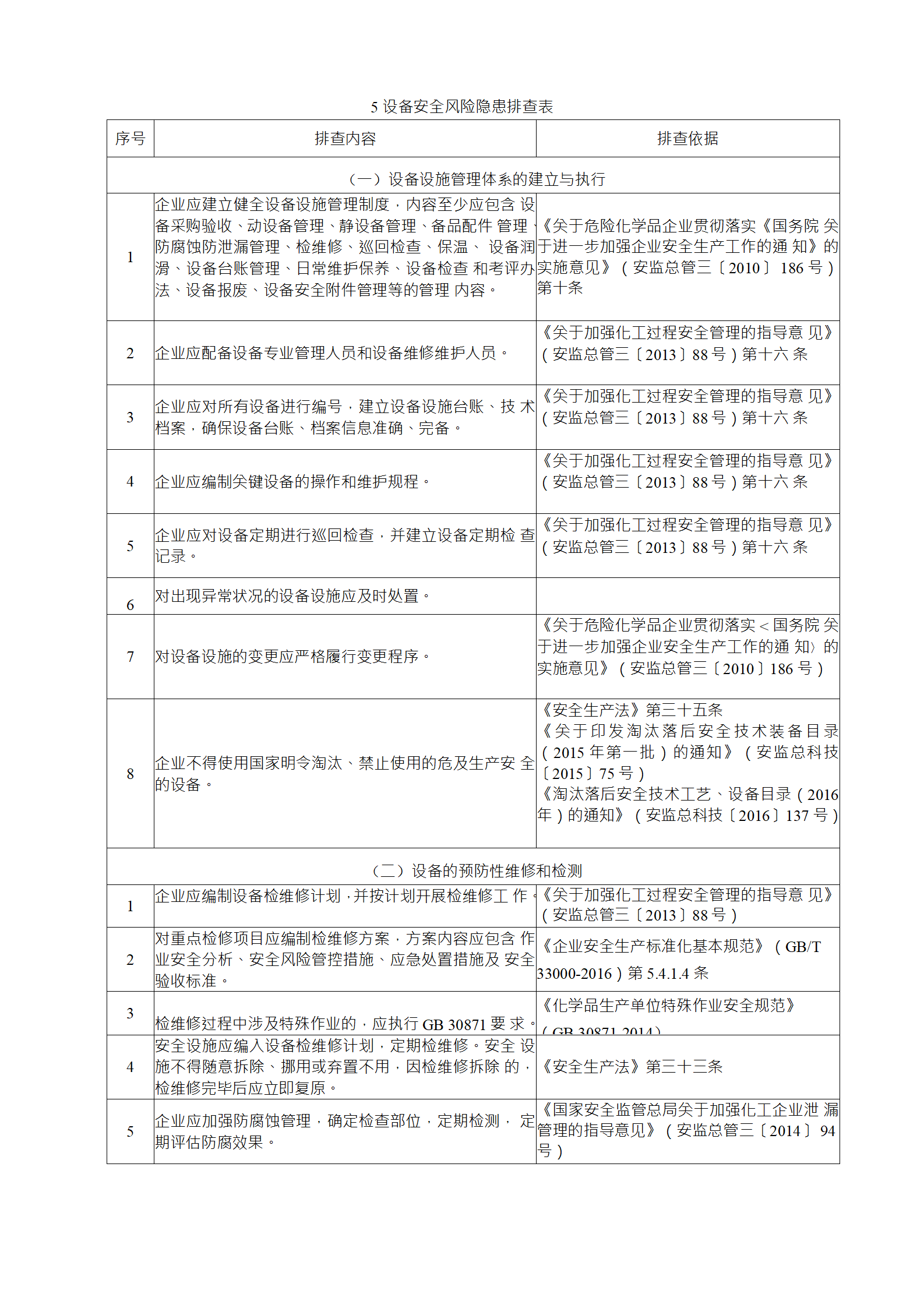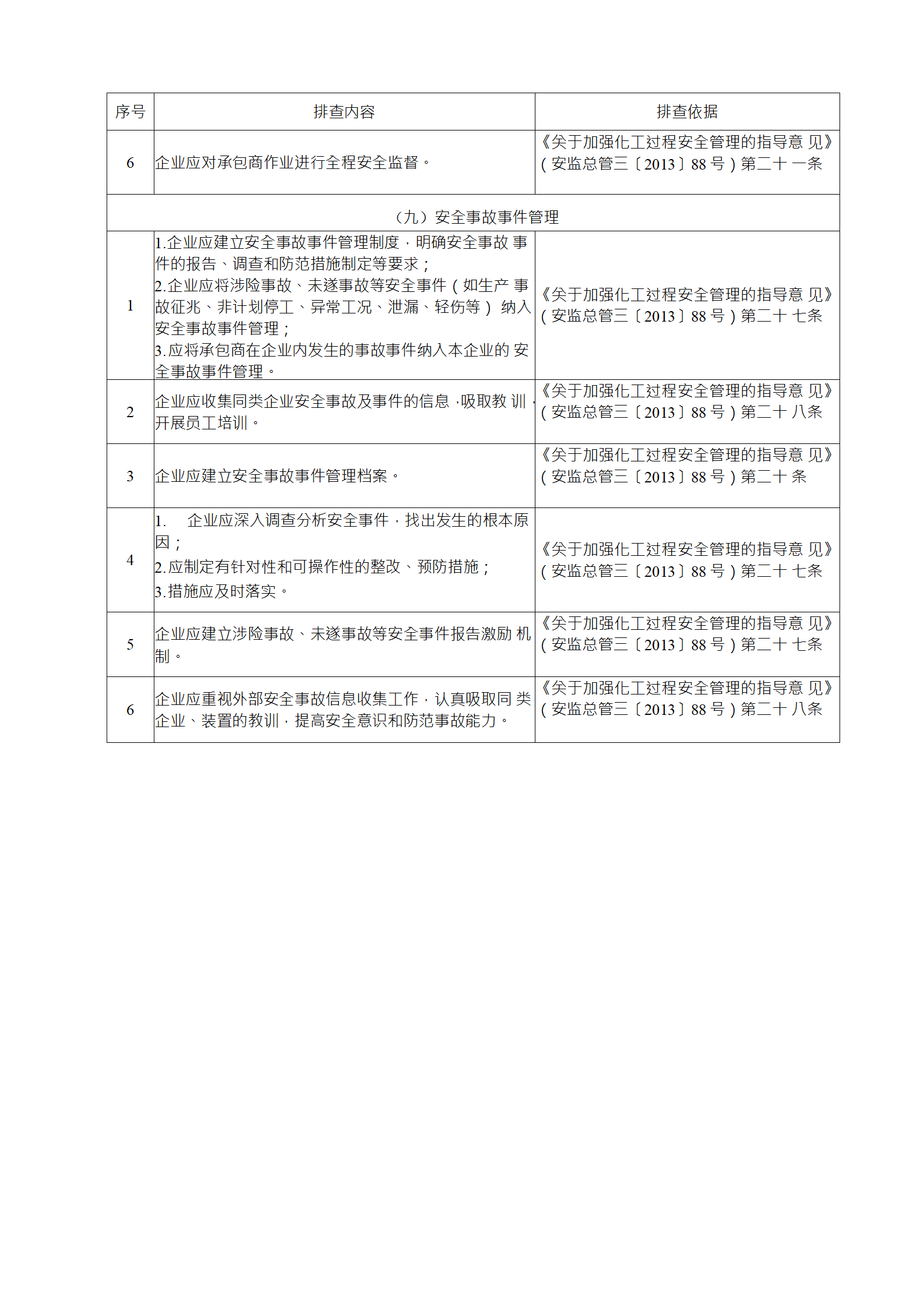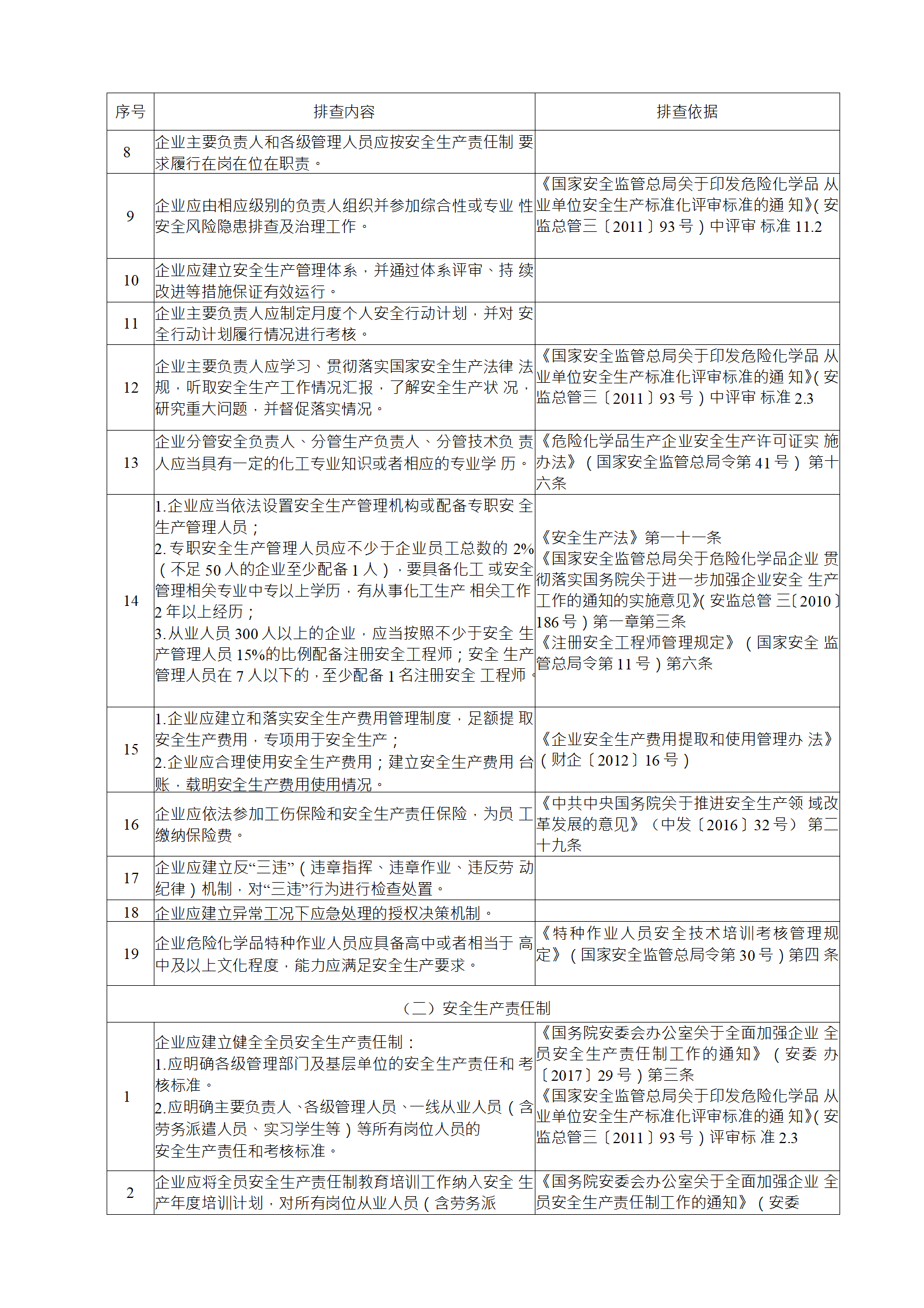 (2)綜合性排查是指以安全生產(chǎn)責(zé)任制、各項(xiàng)專業(yè)管理制 度、安全生產(chǎn)管理制度和化工過程安全管理各要素落實(shí)情況為重點(diǎn)開展的全面檢查;