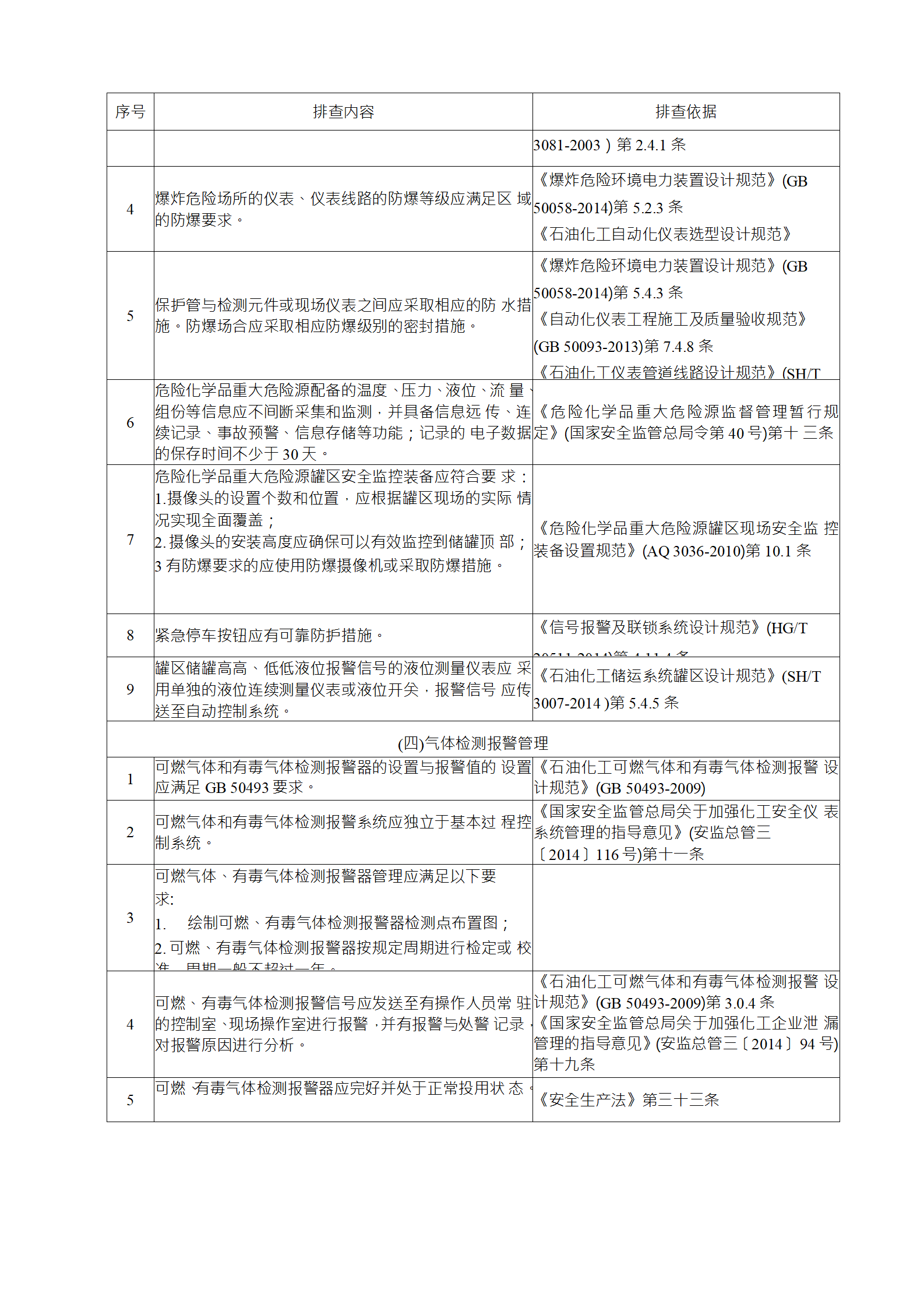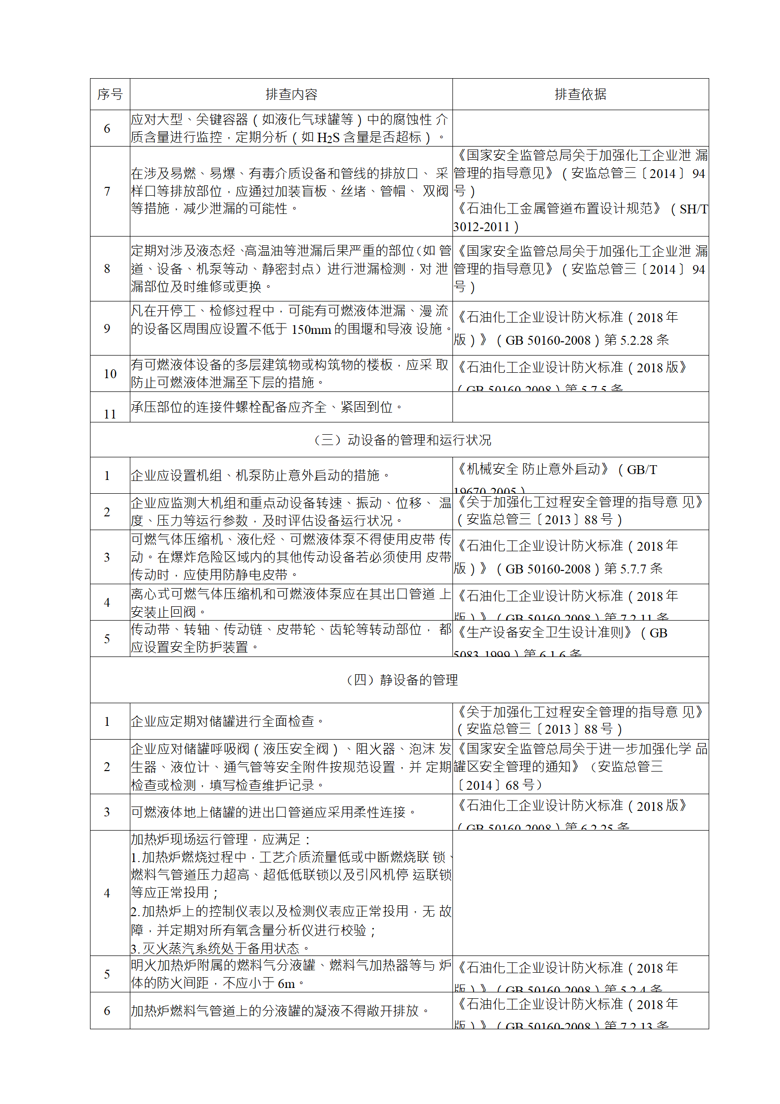 (3)專業(yè)性排查是指工藝、設(shè)備、電氣、儀表、儲(chǔ)運(yùn)、消 防和公用工程等專業(yè)對生產(chǎn)各系統(tǒng)進(jìn)行的檢查;