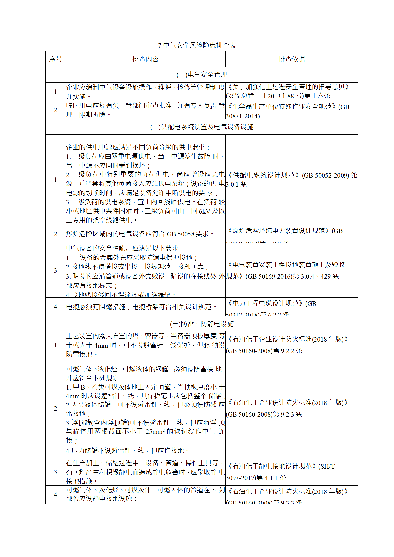 (4)季節(jié)性排查是指根據(jù)各季節(jié)特點(diǎn)開展的專項(xiàng)檢查,主要包括:春季以防雷、防靜電、防解凍泄漏、防解凍坍塌為重 點(diǎn);夏季以防雷暴、防設(shè)備容器超溫超壓、防臺(tái)風(fēng)、防洪、防 暑降溫為重點(diǎn);秋季以防雷暴、防火、防靜電、防凝保溫為重 點(diǎn);冬季以防火、防爆、防雪、防凍防凝、防滑、防靜電為重 點(diǎn);