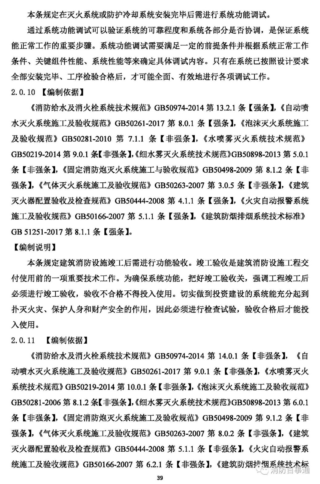 2.0.9 固定或半固定滅火系統(tǒng)或防護(hù)冷卻系統(tǒng)、防排煙系統(tǒng)和火災(zāi)自動(dòng)報(bào)警系統(tǒng)安裝完畢后,應(yīng)對系統(tǒng)進(jìn)行系統(tǒng)功能調(diào)試。