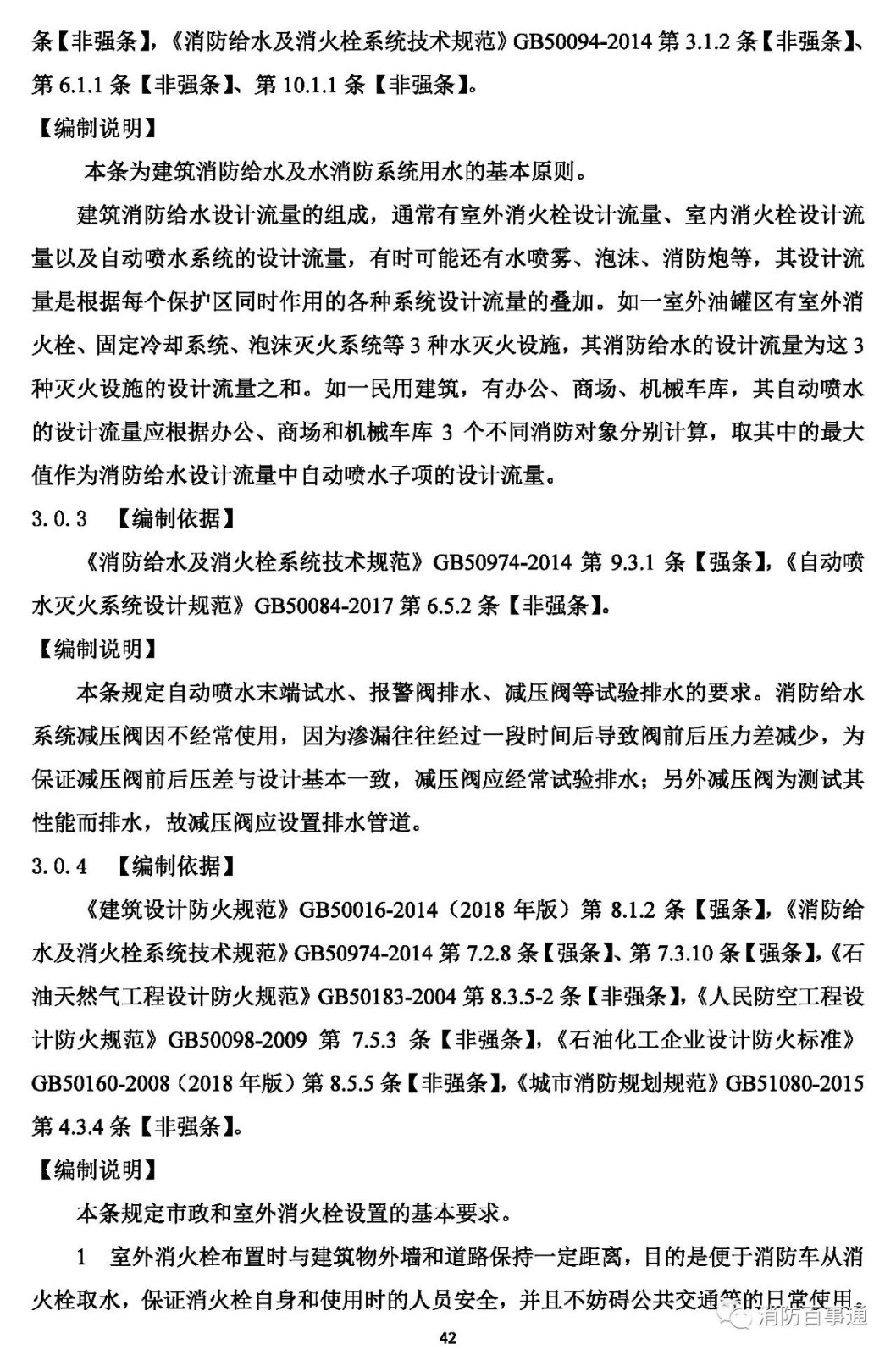 1.0.5 執(zhí)行本規(guī)范必須同時(shí)加強(qiáng)工程質(zhì)量安全管理,嚴(yán)格規(guī)范的實(shí)施監(jiān)督。建筑在規(guī)劃、設(shè)計(jì)、施工和使用中的消防設(shè)施,除應(yīng)遵守本規(guī)范外,尚應(yīng)符合國家現(xiàn)行有關(guān)規(guī)范的規(guī)定。