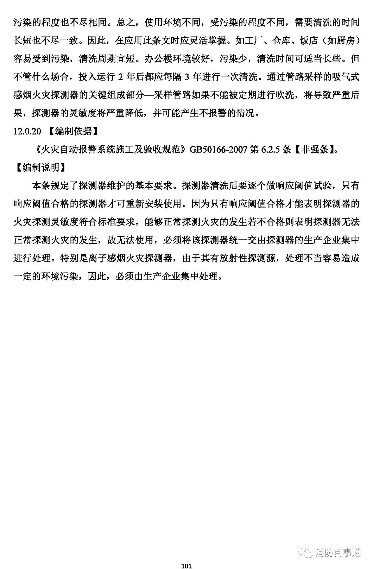12.0.19 點(diǎn)型感煙火災(zāi)探測器安裝 2 年后,每3 年應(yīng)至少全部清洗一次;通過采樣管采樣的吸氣式感煙火災(zāi)探測器,每年至少應(yīng)對采樣管吹掃一次。