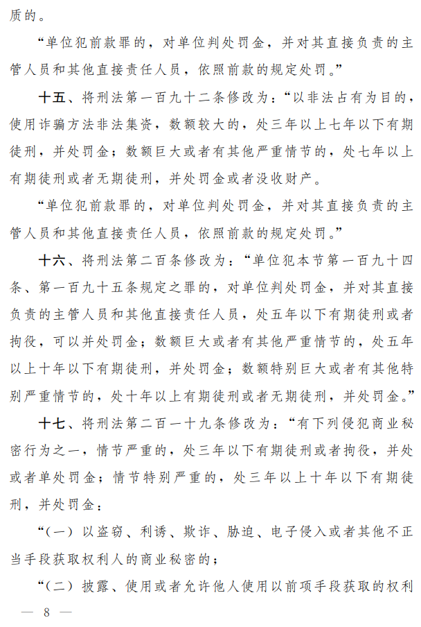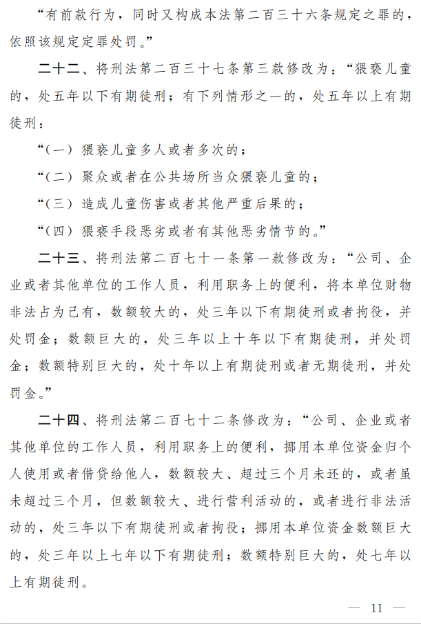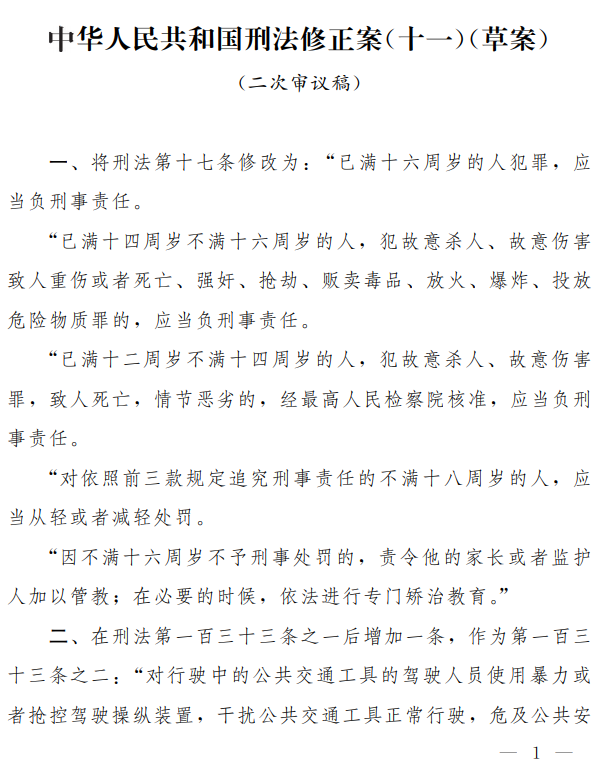 第十三屆全國人大常委會(huì)第二十二次會(huì)議對《中華人民共和國刑法修正案(十一)(草案二次審議稿)》進(jìn)行了審議,現(xiàn)公布《中華人民共和國刑法修正案(十一)(草案二次審議稿)》全文。