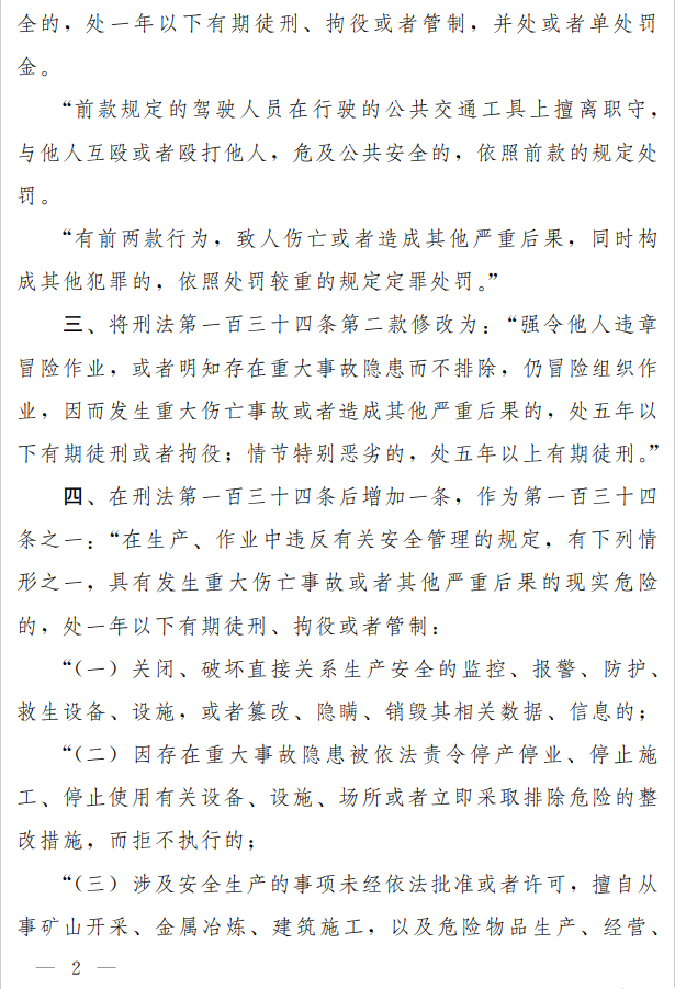 刑法修正案(十一)二次審議稿:“未及時(shí)發(fā)現(xiàn)重大安全隱患,將入刑”取消了!