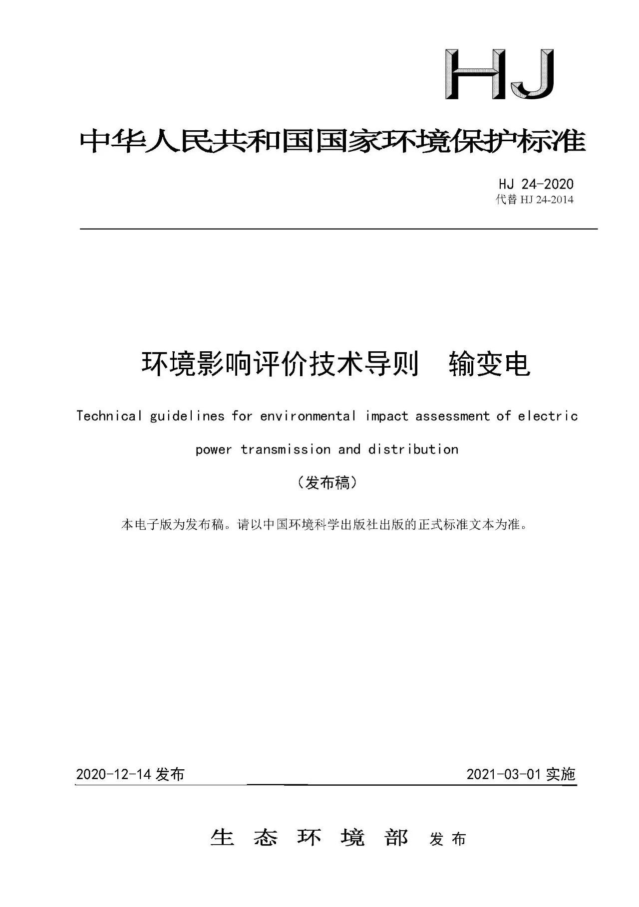 二、《環(huán)境影響評(píng)價(jià)技術(shù)導(dǎo)則 輸變電》(HJ 24-2020)