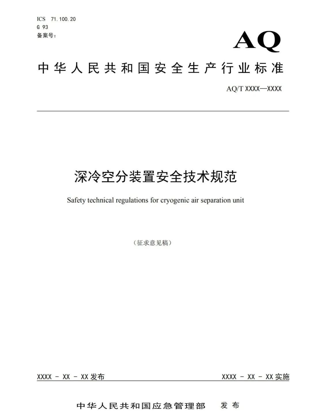 12月15日,國(guó)家應(yīng)急管理部發(fā)布了關(guān)于《深冷空分裝置安全技術(shù)規(guī)范》(征求意見(jiàn)稿)等兩項(xiàng)標(biāo)準(zhǔn)征求意見(jiàn)。此次公開(kāi)征求意見(jiàn)時(shí)間為2020年12月10日至2021年2月10日。本標(biāo)準(zhǔn)規(guī)定了深冷空分裝置的總體布局、吸入空氣質(zhì)量控制、壓縮機(jī)、膨脹機(jī)、低溫泵、空分冷箱和精餾系統(tǒng)、產(chǎn)品儲(chǔ)運(yùn)、稀有氣體裝置、控制系統(tǒng)、安全操作運(yùn)行、人員管理與事故應(yīng)急處置等內(nèi)容的要求。本標(biāo)準(zhǔn)適用于以冶金、有色、化工、石化、煤化工、電子等領(lǐng)域采用深冷空分裝置制取氧、氮、氬(包含:氦、氖、氪、氙稀有氣體)等空氣產(chǎn)品的企業(yè)。附件:深冷空分裝置安全技術(shù)規(guī)范(征求意見(jiàn)稿)
