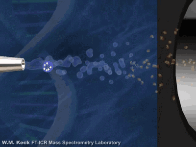FT-ICR質(zhì)譜的分析器是一個(gè)具有均勻(超導(dǎo))磁場的空腔,離子在垂直于磁場的圓形軌道上作回旋運(yùn)動(dòng),回旋頻率僅與磁場強(qiáng)度和離子的質(zhì)荷比有關(guān),因此可以分離不同質(zhì)荷比的離子,并得到質(zhì)荷比相關(guān)的圖譜。