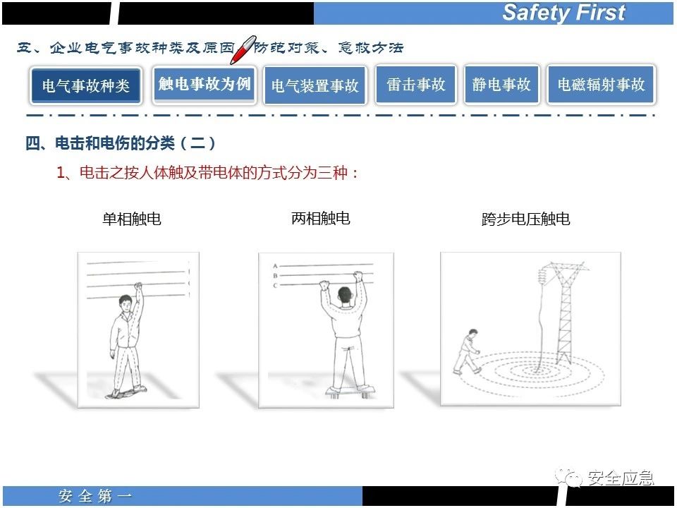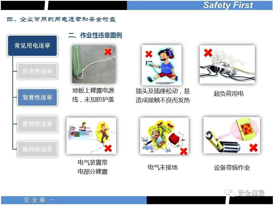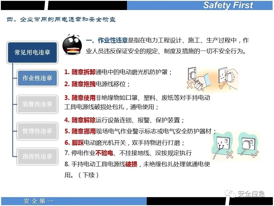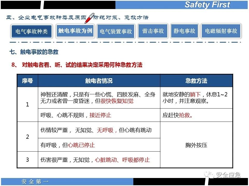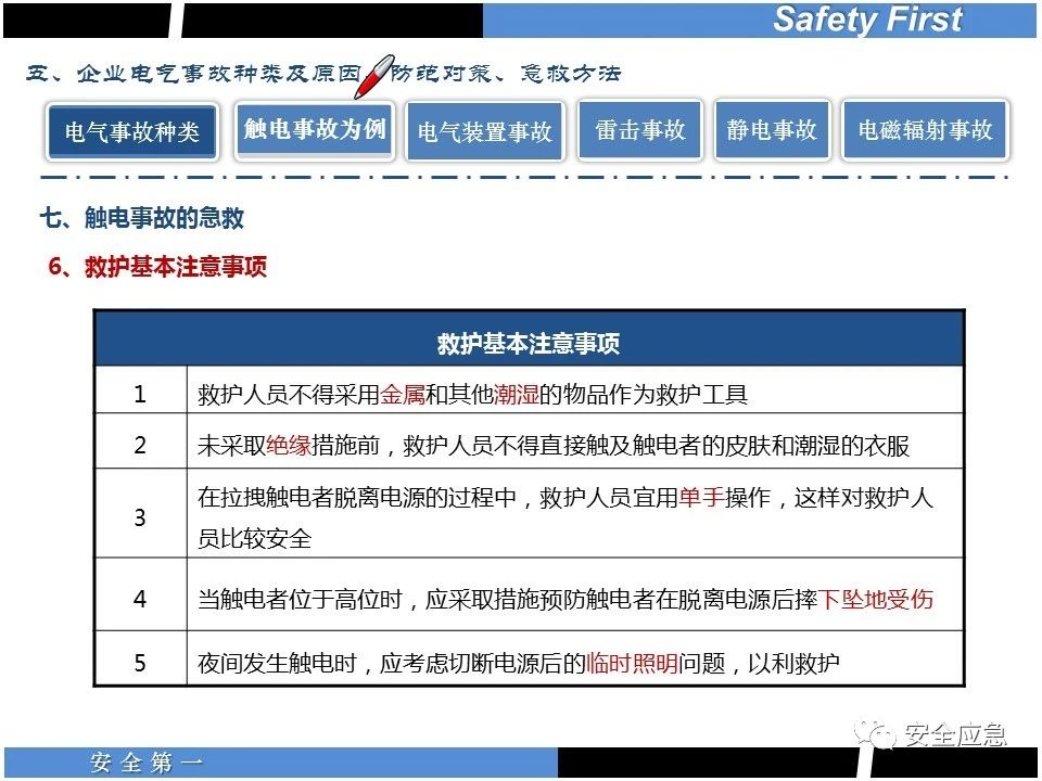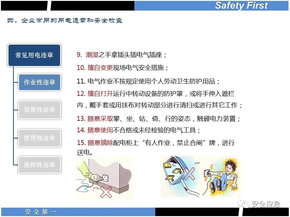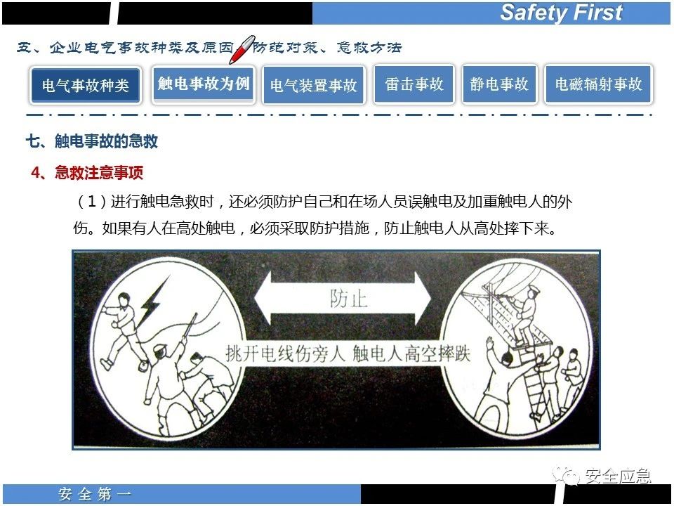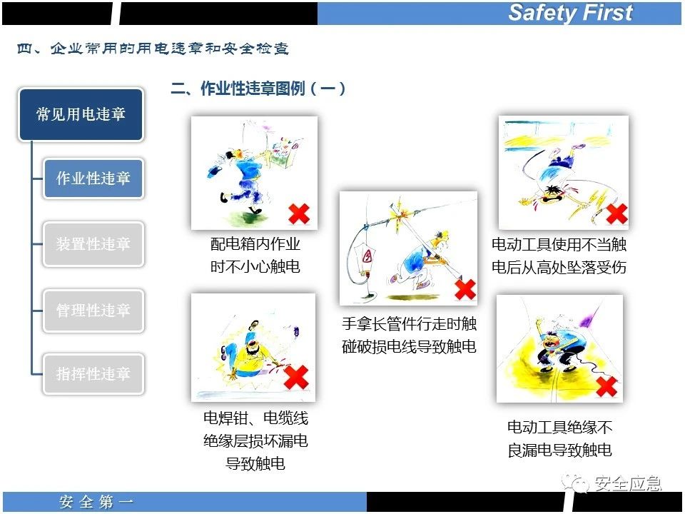 案例73 事故案例73:某35變電站準(zhǔn)備10kV避雷器試驗(yàn)。作業(yè)人員會(huì)同運(yùn)行人員準(zhǔn)備查看設(shè)備實(shí)際情況,拆卸10kV開關(guān)柜背板螺栓,打開了柜門上的電磁鎖,并打開了后柜門后,作業(yè)人員探頭進(jìn)入開關(guān)柜內(nèi)時(shí),對(duì)開關(guān)柜放電。 其它案例見17、18、19、20、21、22、23、50、52。 (27)多組人員組織混亂 案例74 事故案例74:某單位開展500kV線路停電檢修和地線融冰試驗(yàn)。1名工作人員不聽他人勸阻,登塔拆除引流線。隨后開展地線融冰試驗(yàn),該工作人員觸電死亡。 其它案例見45、46、47、48。 (28)交底不認(rèn)真 案例75 事故案例75:某工作負(fù)責(zé)人帶領(lǐng)兩名工作人員準(zhǔn)備在10kV線路裝設(shè)接地線。工作前,工作負(fù)責(zé)人沒有進(jìn)行班前(后)會(huì),沒有分配工作任務(wù),也沒有交代安全注意事項(xiàng),另外兩人也沒有主動(dòng)詢問,相互提醒,導(dǎo)致工作負(fù)責(zé)人無監(jiān)護(hù)誤登運(yùn)行線路,造成觸電。 其它案例見32。 (29)監(jiān)護(hù)不到位 l 單人工作無監(jiān)護(hù) 事故案例:36。 l 監(jiān)護(hù)人參與工作 事故案例:11。 l 監(jiān)護(hù)不認(rèn)真,或默許違章行為 事故案例:67。 (30)人員、工作安排不恰當(dāng) 案例76 事故案例76:某供電所安排不具備單獨(dú)工作資格和能力的新入廠員工上桿進(jìn)行配變?cè)O(shè)備搶修工作,由于安全距離不夠,員工經(jīng)驗(yàn)不足,監(jiān)護(hù)不到位,導(dǎo)致觸電。 案例77 事故案例77:某高壓試驗(yàn)班開展定檢預(yù)試作業(yè)。工作負(fù)責(zé)人與工作人員在抄錄放電計(jì)數(shù)器銘牌,另一名剛參加工作不久的工作人員拿著自制試驗(yàn)線插入移動(dòng)電源盤插座內(nèi),然后,用左、右手分別拿住兩個(gè)鱷魚夾準(zhǔn)備對(duì)放電器搭接做試驗(yàn),左、右手習(xí)慣性的分別握住了兩個(gè)鱷魚夾的導(dǎo)體部分,此時(shí)電流通過人體,漏電保護(hù)器沒有動(dòng)作,觸電死亡。 (31)單人作業(yè) l 野外單人巡線、勘察 案例78 事故案例78:某單位開展線路巡視時(shí),單人作業(yè),在被告知“巡視完N58塔后切勿過江,要沿原路返回”的情況下,仍然獨(dú)自一人違規(guī)游泳過江,溺水身亡。 案例79 事故案例79:某單位野外勘察時(shí),某工作人員在未告知工作負(fù)責(zé)人的情況下,獨(dú)自一人返回車輛所在地,途中墜落懸崖暈倒,受輕傷并失蹤12小時(shí)。 附件:最全面的電氣安全培訓(xùn),實(shí)用!