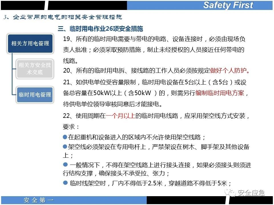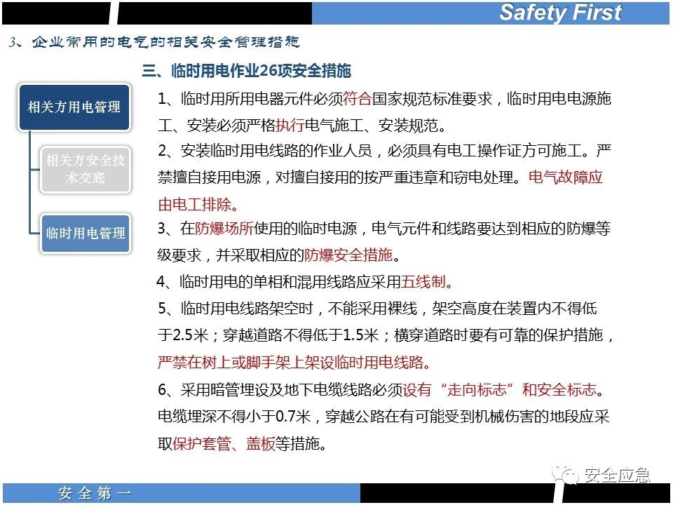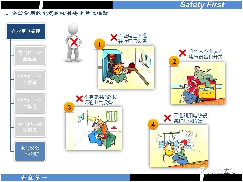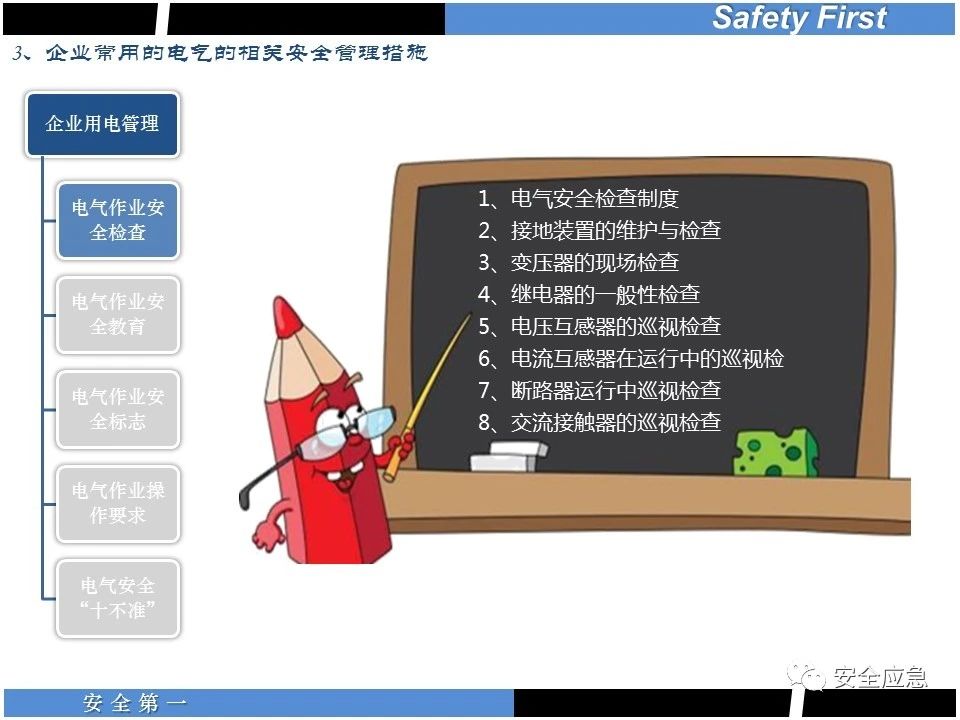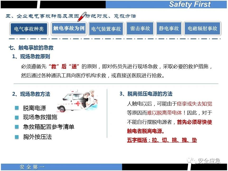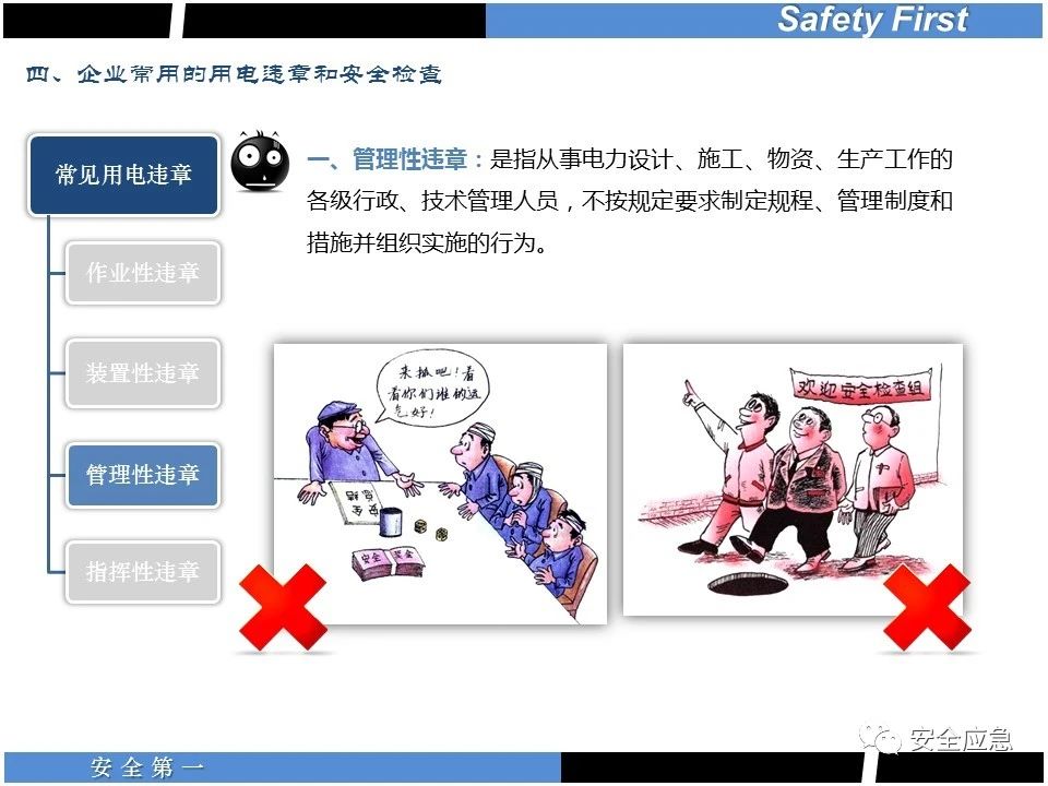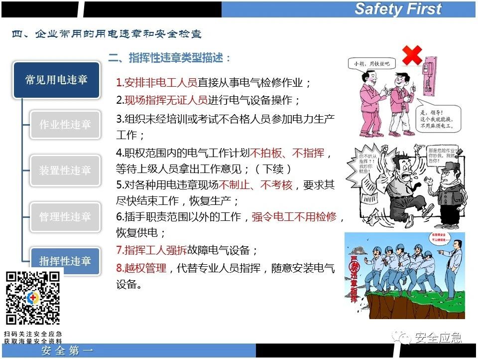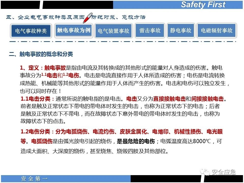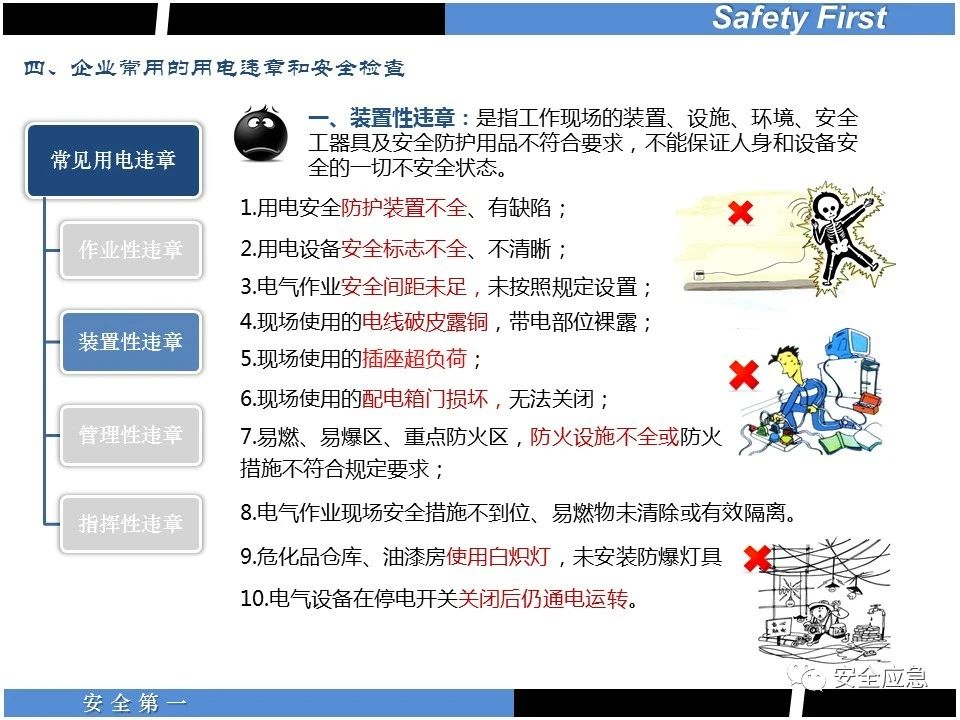 案例73 事故案例73:某35變電站準(zhǔn)備10kV避雷器試驗(yàn)。作業(yè)人員會(huì)同運(yùn)行人員準(zhǔn)備查看設(shè)備實(shí)際情況,拆卸10kV開關(guān)柜背板螺栓,打開了柜門上的電磁鎖,并打開了后柜門后,作業(yè)人員探頭進(jìn)入開關(guān)柜內(nèi)時(shí),對(duì)開關(guān)柜放電。 其它案例見17、18、19、20、21、22、23、50、52。 (27)多組人員組織混亂 案例74 事故案例74:某單位開展500kV線路停電檢修和地線融冰試驗(yàn)。1名工作人員不聽他人勸阻,登塔拆除引流線。隨后開展地線融冰試驗(yàn),該工作人員觸電死亡。 其它案例見45、46、47、48。 (28)交底不認(rèn)真 案例75 事故案例75:某工作負(fù)責(zé)人帶領(lǐng)兩名工作人員準(zhǔn)備在10kV線路裝設(shè)接地線。工作前,工作負(fù)責(zé)人沒有進(jìn)行班前(后)會(huì),沒有分配工作任務(wù),也沒有交代安全注意事項(xiàng),另外兩人也沒有主動(dòng)詢問,相互提醒,導(dǎo)致工作負(fù)責(zé)人無監(jiān)護(hù)誤登運(yùn)行線路,造成觸電。 其它案例見32。 (29)監(jiān)護(hù)不到位 l 單人工作無監(jiān)護(hù) 事故案例:36。 l 監(jiān)護(hù)人參與工作 事故案例:11。 l 監(jiān)護(hù)不認(rèn)真,或默許違章行為 事故案例:67。 (30)人員、工作安排不恰當(dāng) 案例76 事故案例76:某供電所安排不具備單獨(dú)工作資格和能力的新入廠員工上桿進(jìn)行配變?cè)O(shè)備搶修工作,由于安全距離不夠,員工經(jīng)驗(yàn)不足,監(jiān)護(hù)不到位,導(dǎo)致觸電。 案例77 事故案例77:某高壓試驗(yàn)班開展定檢預(yù)試作業(yè)。工作負(fù)責(zé)人與工作人員在抄錄放電計(jì)數(shù)器銘牌,另一名剛參加工作不久的工作人員拿著自制試驗(yàn)線插入移動(dòng)電源盤插座內(nèi),然后,用左、右手分別拿住兩個(gè)鱷魚夾準(zhǔn)備對(duì)放電器搭接做試驗(yàn),左、右手習(xí)慣性的分別握住了兩個(gè)鱷魚夾的導(dǎo)體部分,此時(shí)電流通過人體,漏電保護(hù)器沒有動(dòng)作,觸電死亡。 (31)單人作業(yè) l 野外單人巡線、勘察 案例78 事故案例78:某單位開展線路巡視時(shí),單人作業(yè),在被告知“巡視完N58塔后切勿過江,要沿原路返回”的情況下,仍然獨(dú)自一人違規(guī)游泳過江,溺水身亡。 案例79 事故案例79:某單位野外勘察時(shí),某工作人員在未告知工作負(fù)責(zé)人的情況下,獨(dú)自一人返回車輛所在地,途中墜落懸崖暈倒,受輕傷并失蹤12小時(shí)。 附件:最全面的電氣安全培訓(xùn),實(shí)用!
