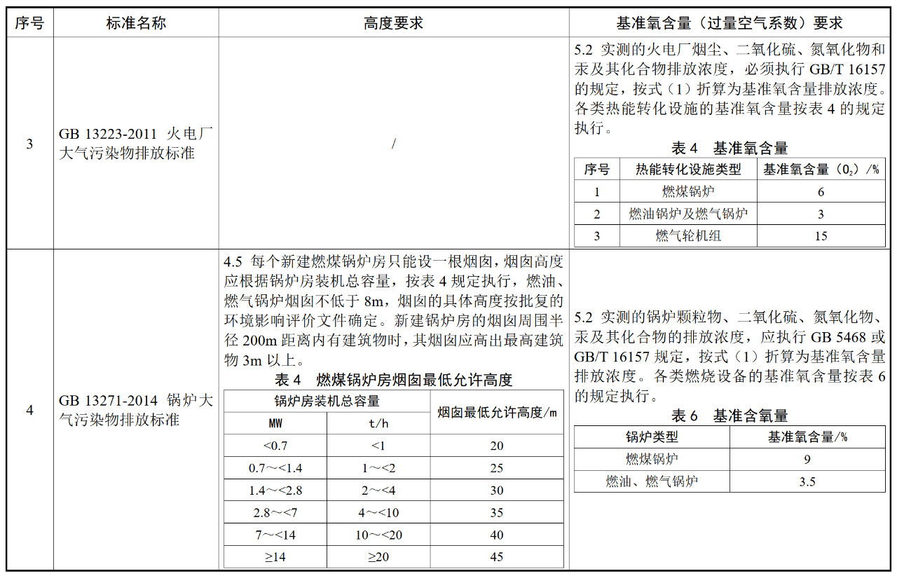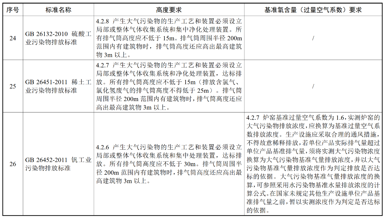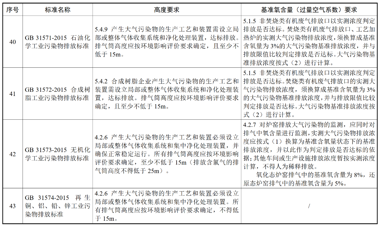 各行業(yè)大氣污染物(含VOCs)排氣筒高度及基準(zhǔn)氧含量要求