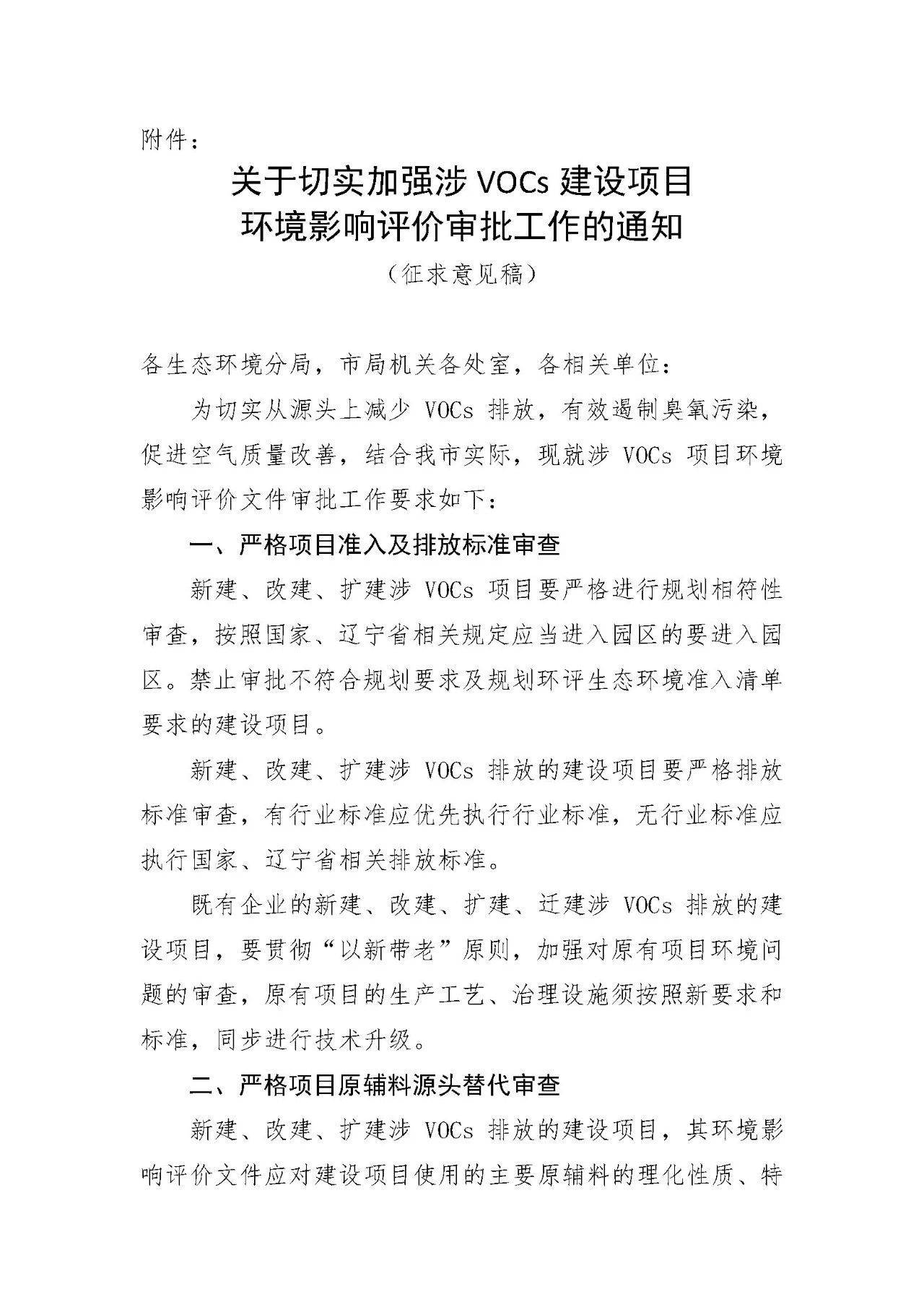 昨日,沈陽市生態(tài)環(huán)境局發(fā)布“關于公開征求《關于切實加強涉VOCs建設項目環(huán)境影響評價審批工作的通知》意見的通知”,全文為涉VOCs項目環(huán)境影響評價文件審批工作要求細則。