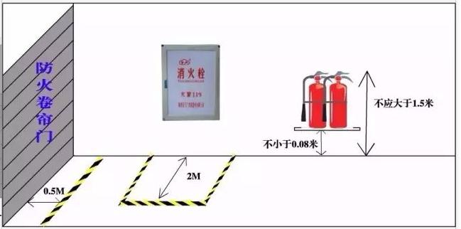 防火卷簾門兩側(cè)各0.5m范圍內(nèi)不得堆放物品,并應(yīng)用黃色標識線劃定范圍?!度藛T密集場所消防安全管理》(GA654-2006)8.3.7
