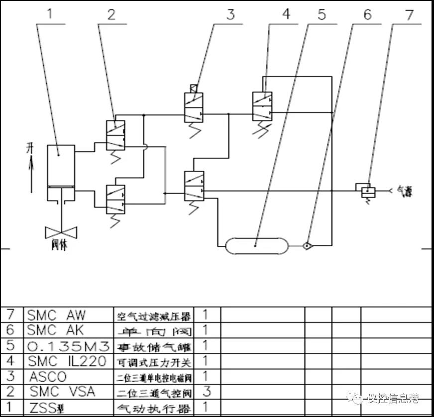 是不是這種閥門最好呢?也不一定。這種結構的閥門最大的弊端是,不好判斷彈簧作用力的可靠性,當聯(lián)鎖需要緊急啟動,而動力風又中斷的緊急狀態(tài)下,彈簧如果乏力,那閥門會無法關閉或者打開。而彈簧是否可靠,在正常聯(lián)鎖測試中不好判斷。 常見切斷閥的結構就這三種模式,了解這三種氣缸結構就了解閥門的故障狀態(tài)了嗎?這還遠遠不夠。氣缸的動作模式完全由外部氣動元件來控制,而氣控元件的組合根據聯(lián)鎖的需要千變萬化。舉幾個簡單的例子: 1、單缸單作用在動力風中斷時一定會關閉或者打開嗎? 大部分聯(lián)鎖閥門在動力風中斷時要求關閉或者打開,但是聯(lián)鎖的設計一定是可用性和可靠性的綜合考慮。在考慮安全性的同時一定會考慮可用性,且有時候的動力風中斷并非全部中斷,而是局部動力風管線的受損。關閉某個切斷閥會造成較大的經濟損失或者給生產帶來次生安全風險。這種情況下,一般閥門上會帶有鎖止閥,其作用就是當動力風壓力降到一定的設定值時,切斷動力風,氣缸中的壓力始終推動彈簧使得閥門保持原有狀態(tài)。加上鎖止閥就變?yōu)镕L。什么情況下用到這種閥呢,比如大型的氣體凈化項目,當下游生產裝置發(fā)生故障時,需要緊急切斷上游供料閥門,下游裝置全部停工,可能會造成幾千萬的經濟損失。但是動力風暫時故障,能在短時間恢復,倒不如設置成FLC。