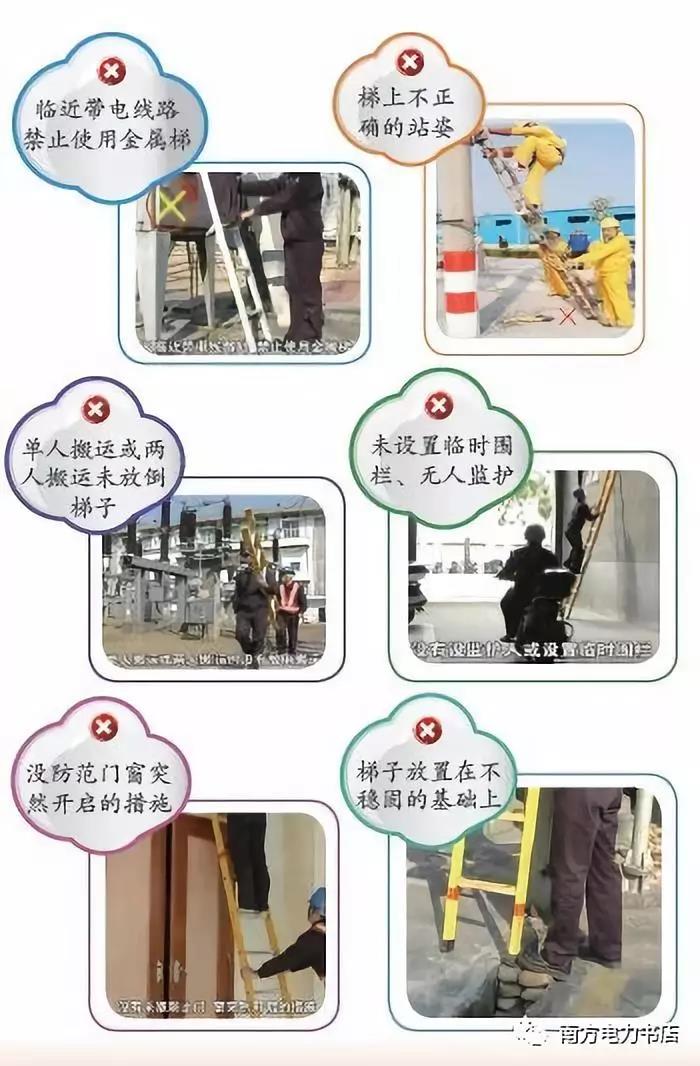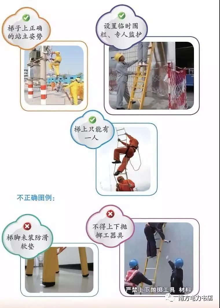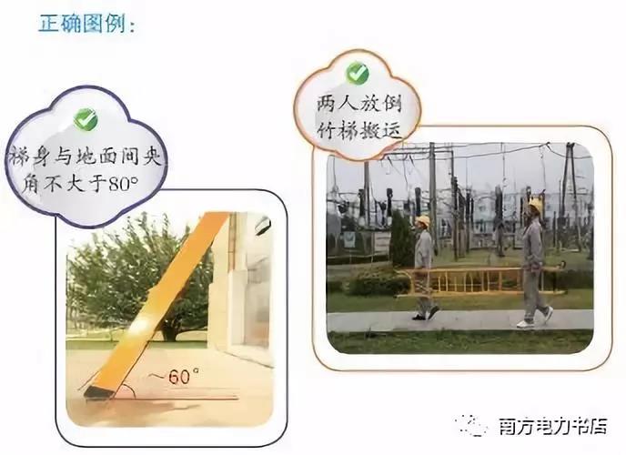 (6)在部分停電或不停電的作業(yè)環(huán)境下,應使用絕緣梯。在帶電設備區(qū)域中,距離運行設備較近時,嚴禁使用金屬梯。在戶外變電站和高壓室內搬動梯子、管子等長物,應兩人放倒搬運,并與帶電部分保持足夠的安全距離,以免人身觸電氣設備發(fā)生事故。