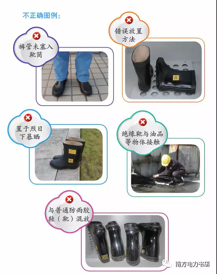 (1)絕緣靴不得當作雨鞋或作其它用,一般膠靴也不能代替絕緣靴使用。