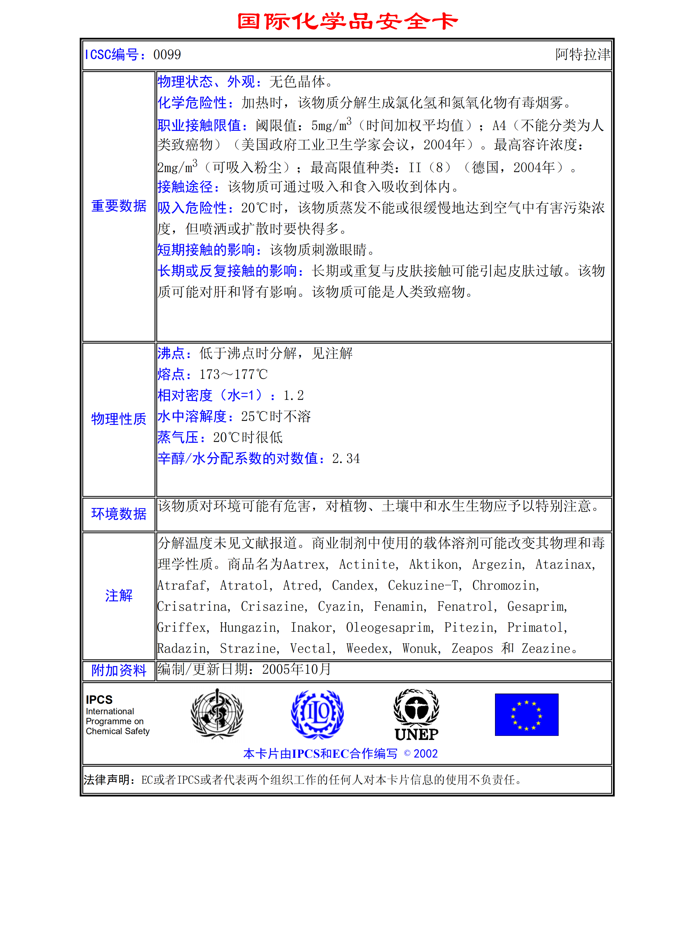 阿特拉津MSDS