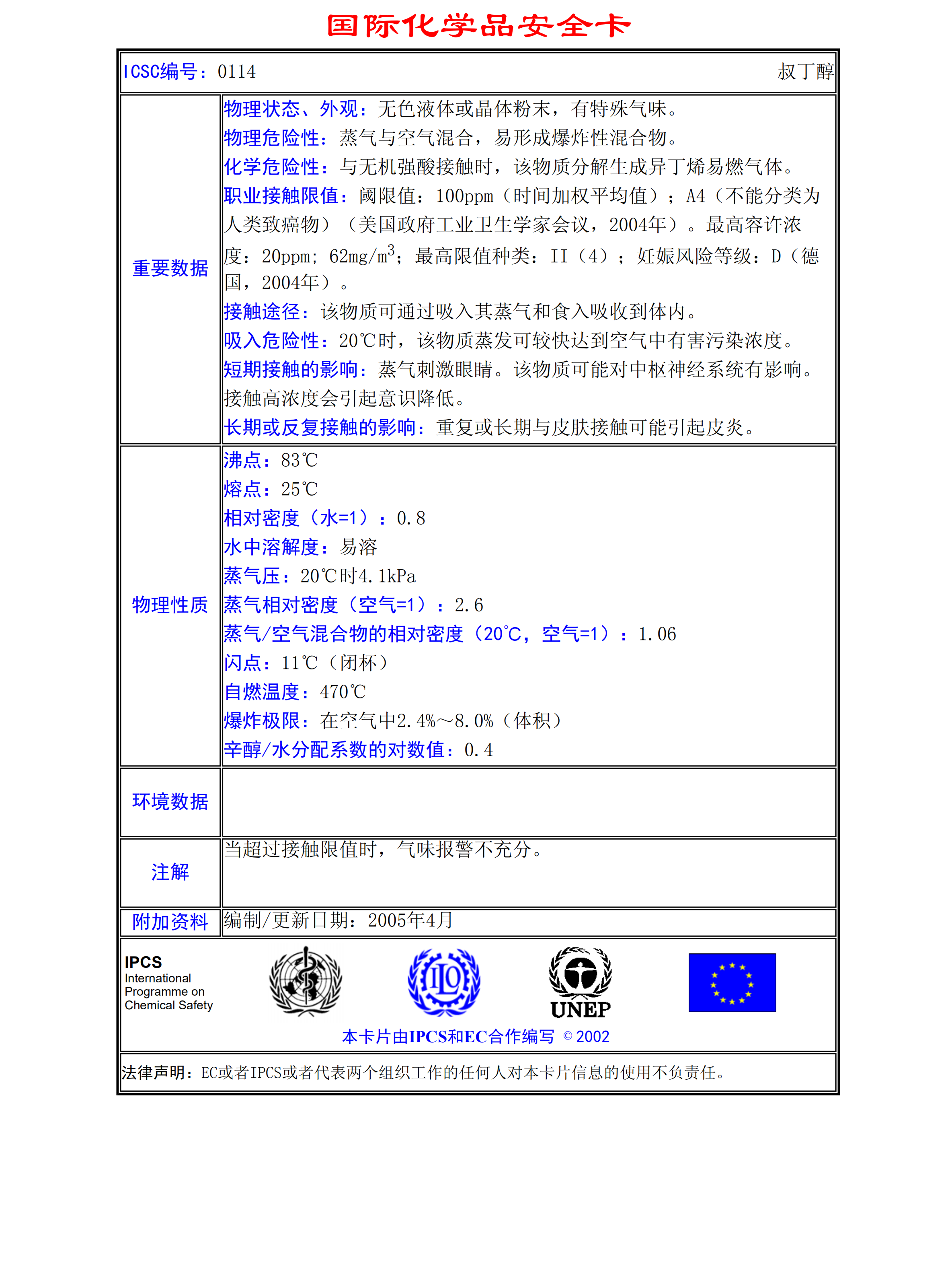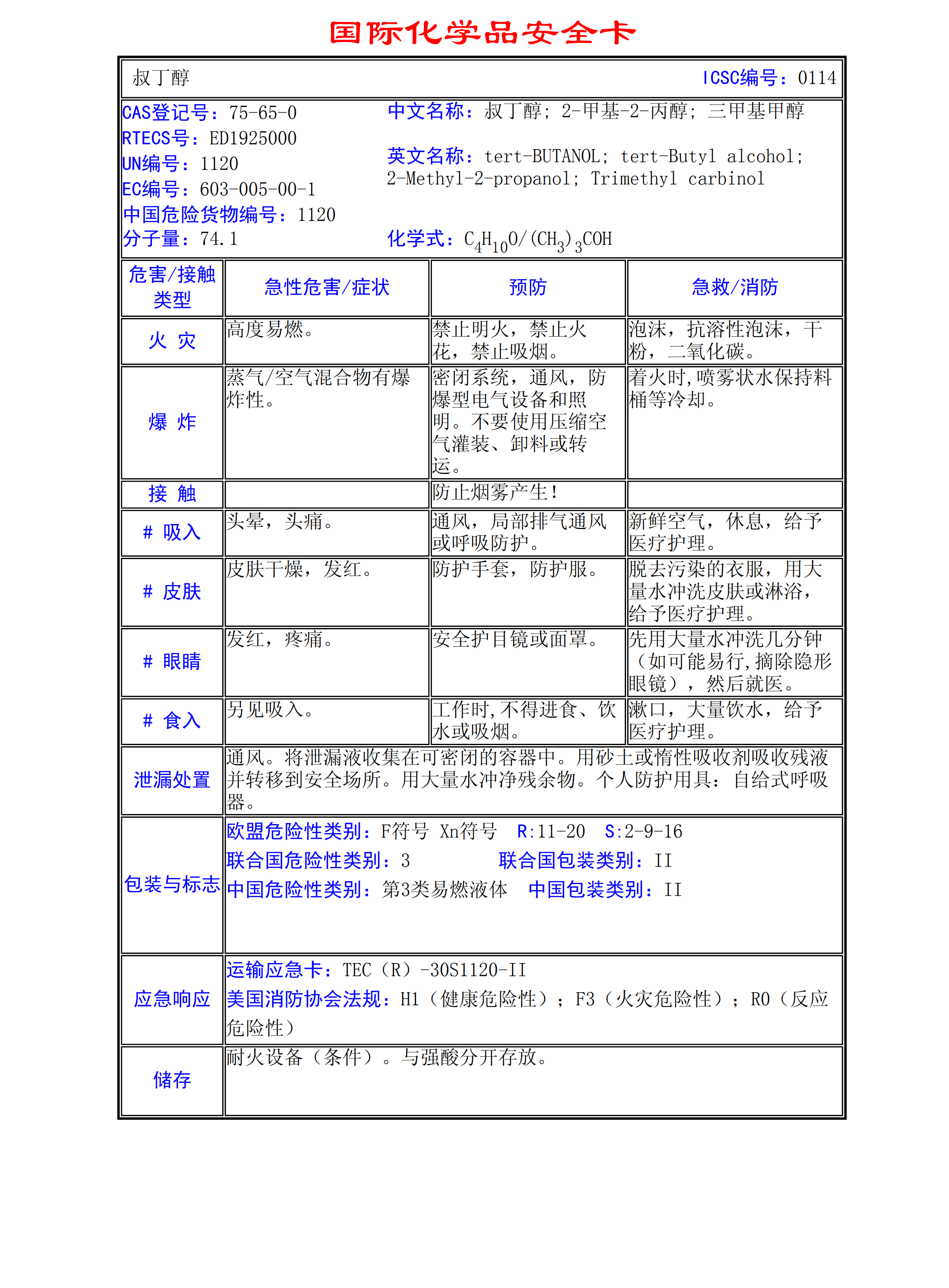 叔丁醇MSDS