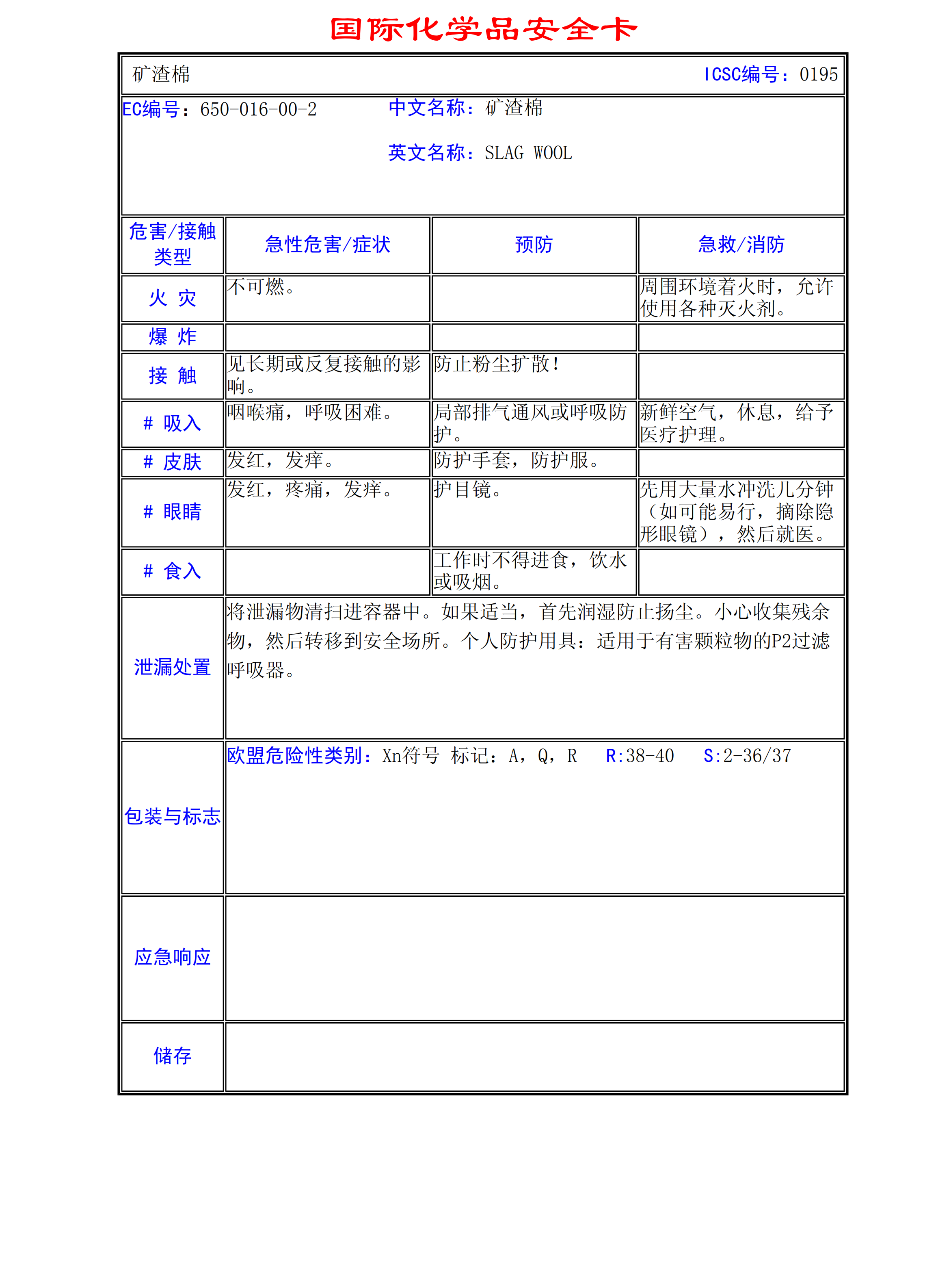 礦渣棉MSDS