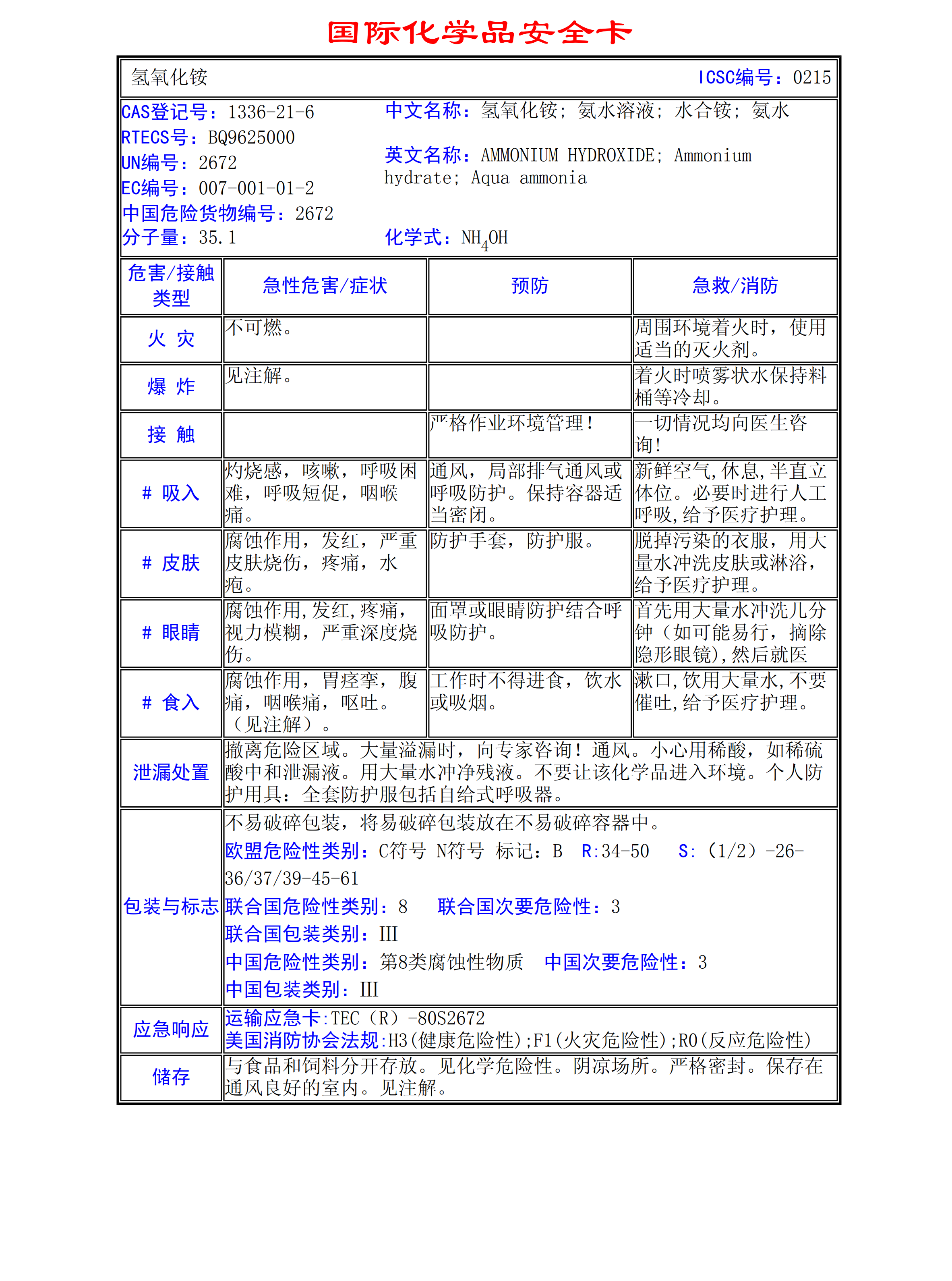 氫氧化銨MSDS