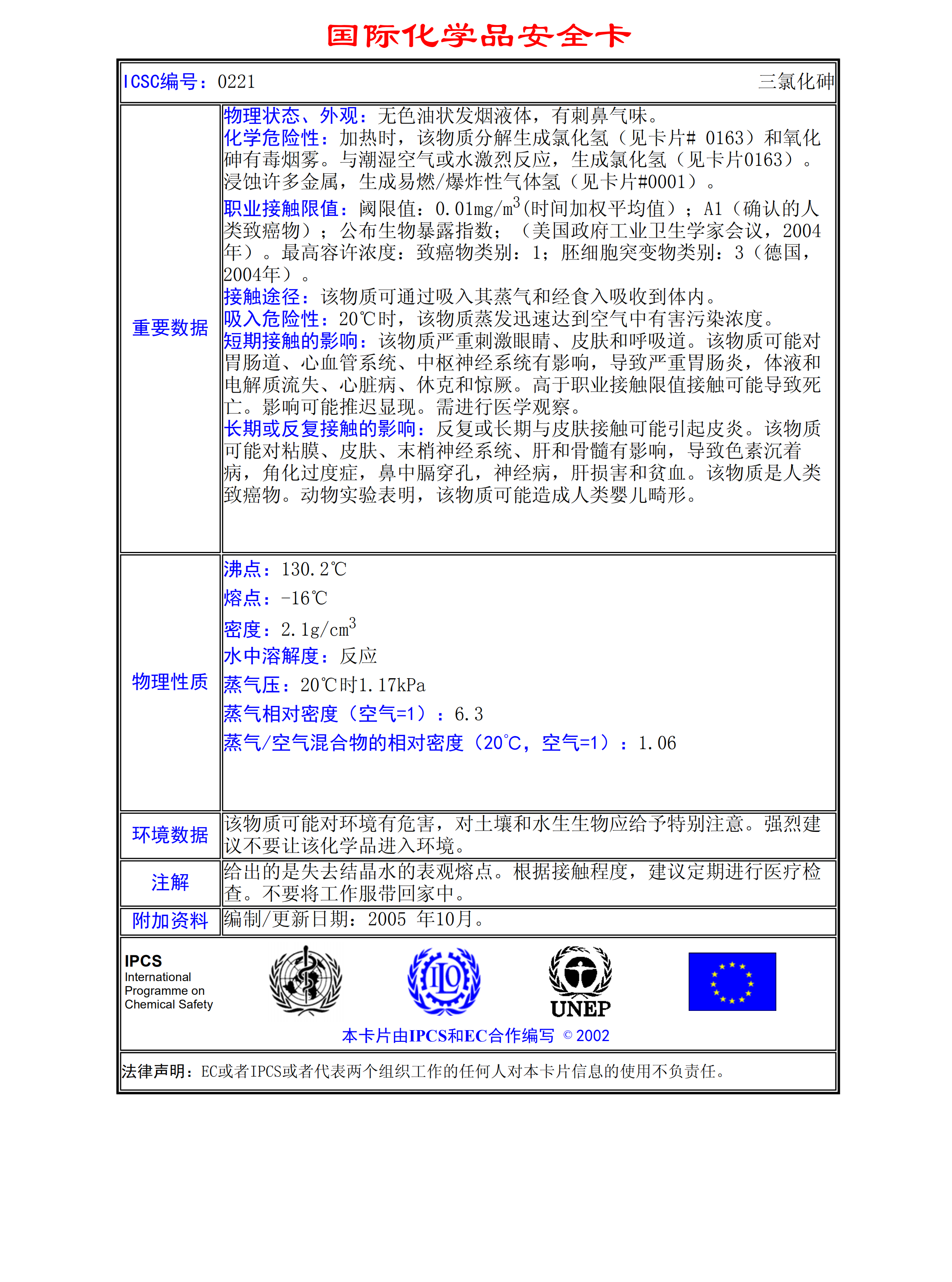 三氯化砷MSDS