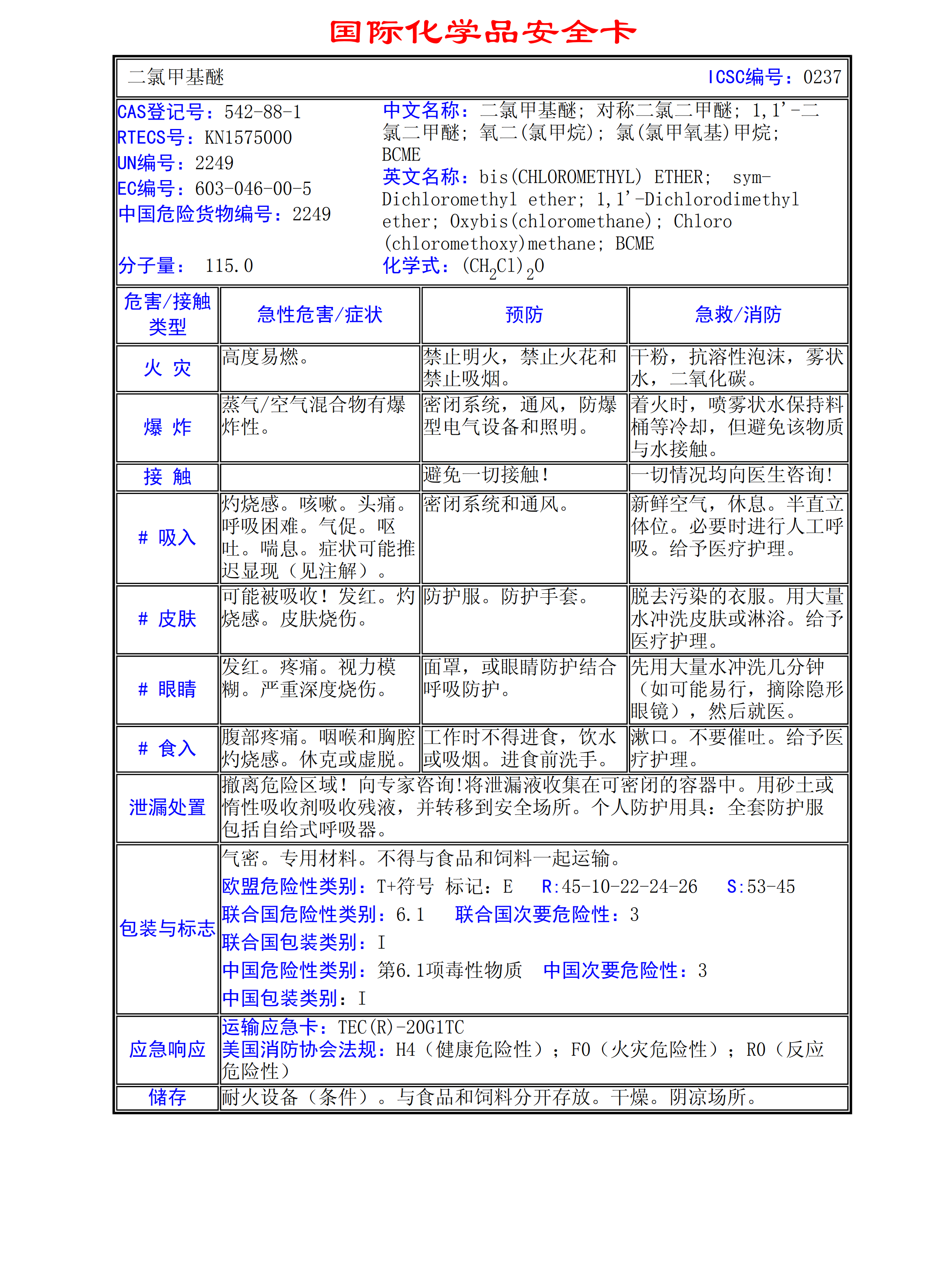 二氯甲基醚MSDS