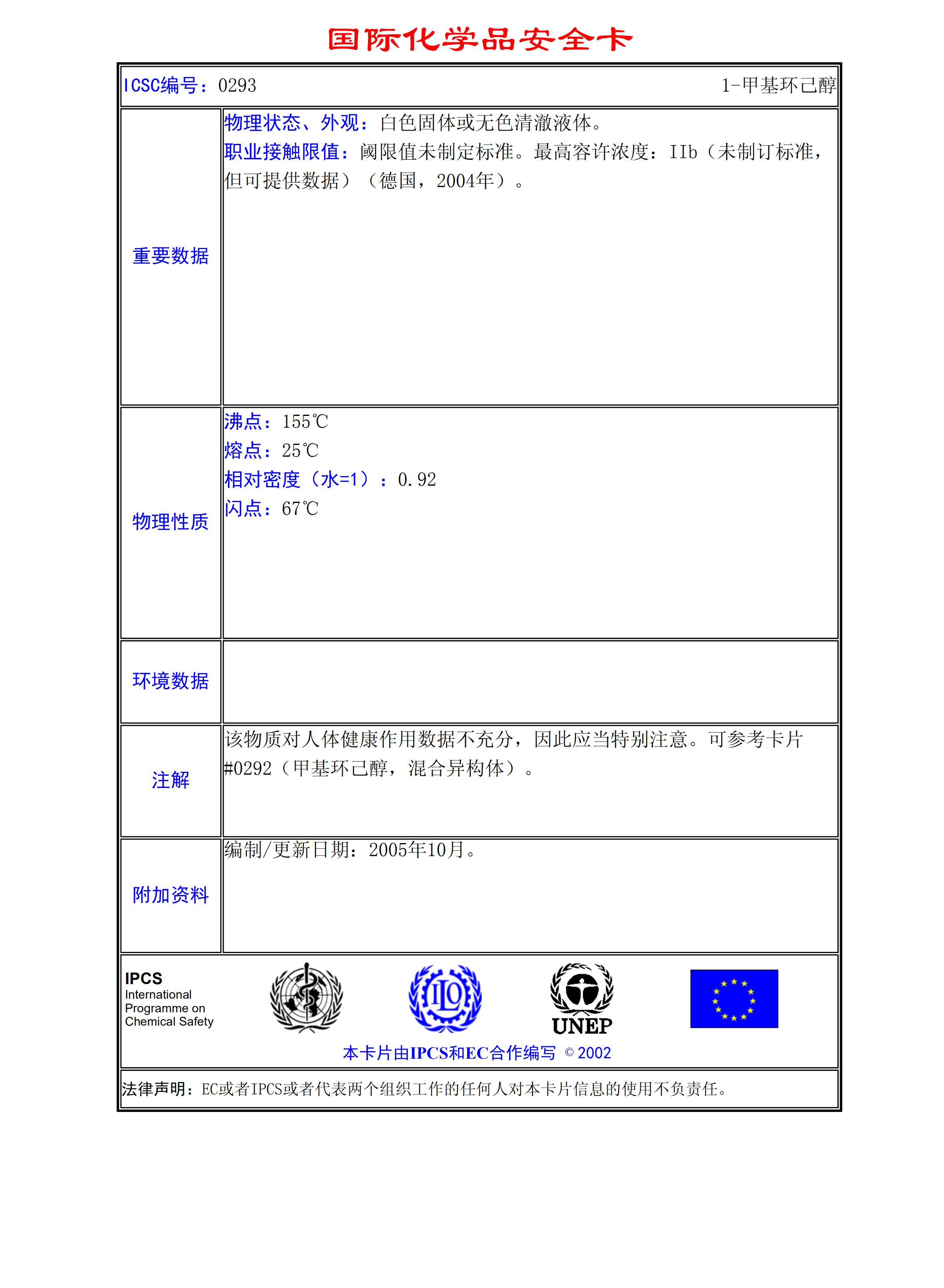 甲基環(huán)己醇(混合異構(gòu)體)MSDS