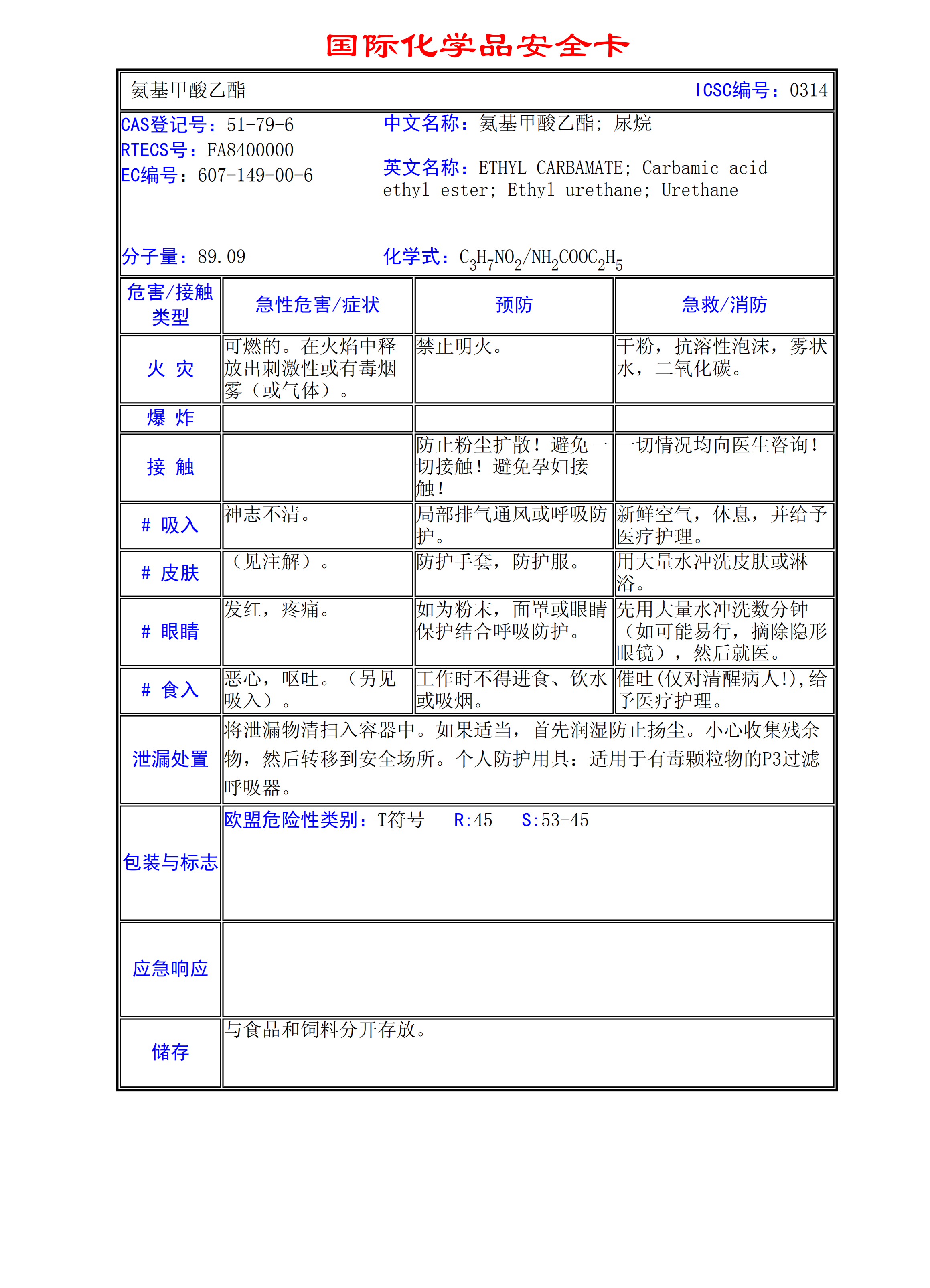 氨基甲酸乙酯MSDS