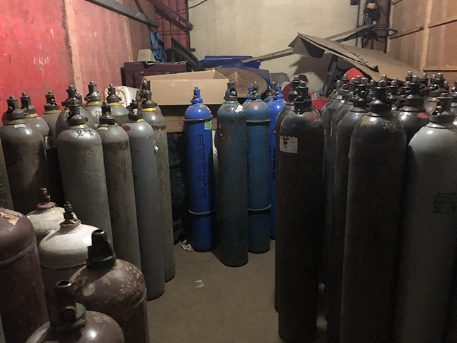 浙江杭州市案例:2021年3月8日上午,浙江省杭州市蕭山區(qū)應(yīng)急管理局執(zhí)法人員對某公司進(jìn)行執(zhí)法檢查。期間,執(zhí)法人員發(fā)現(xiàn)廠區(qū)內(nèi)一簡易鋼棚搭設(shè)的倉庫,玻璃窗均被物體人為遮擋,檢查發(fā)現(xiàn)倉庫內(nèi)堆放了大量?;罚M瓶二氧化碳、氧氣、乙炔、混合氣體、氮?dú)獾?span style="margin-bottom: 37px;line-height: 37px;font-size: 21px">176個(gè)氣瓶。同時(shí),該倉庫緊鄰公司員工宿舍樓搭設(shè),宿舍樓里還住著數(shù)十個(gè)工人,一旦發(fā)生爆炸,后果不堪設(shè)想。