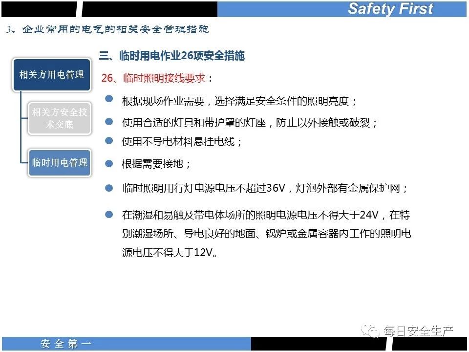 (4)在一些觸電危險較大的場所,采取安全低電壓電流;