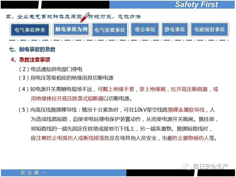 遇到觸電事故,現(xiàn)場救援必須注意以下幾點: