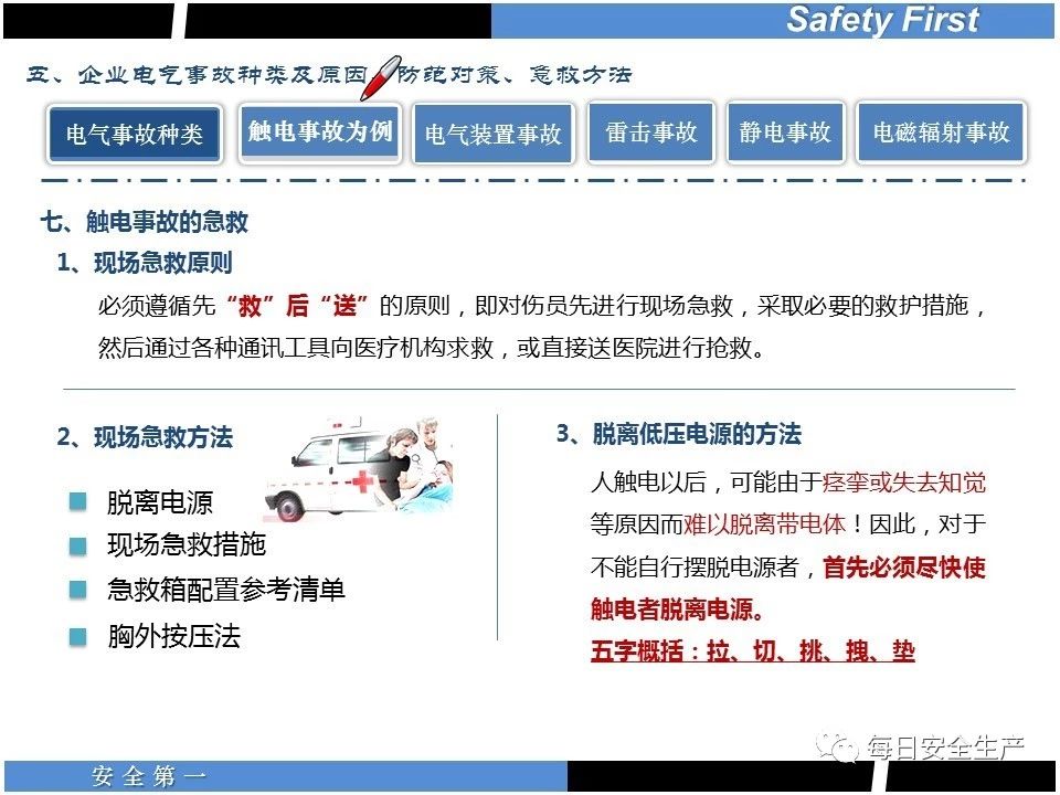 如果是低壓電源觸電,實施“五字”脫離電源法:
