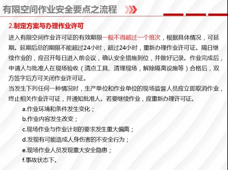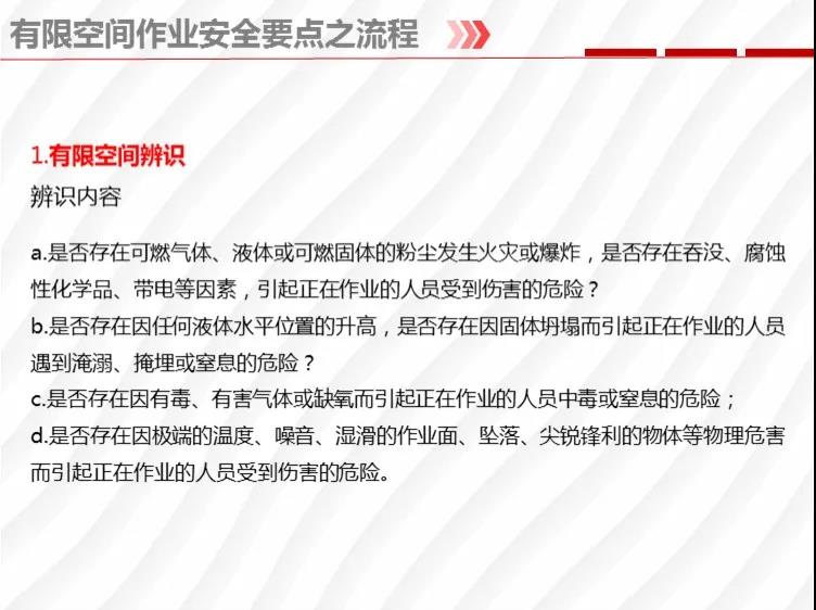 一要立即開展有限空間安全風險排查。春節(jié)假期剛過,各類企業(yè)集中復工復產(chǎn),涉及有限空間作業(yè)安全的檢維修、調(diào)試行為增多,加之氣溫逐漸升高,造成有限空間中有毒有害氣體集聚,安全風險加劇。各地各有關部門要督促涉及有限空間作業(yè)的工礦商貿(mào)企業(yè)以及市政工程、垃圾發(fā)電、燃氣、熱力、排水、衛(wèi)生、環(huán)保等重點單位、重點區(qū)域、重點場所開展全方位的風險隱患排查。對發(fā)現(xiàn)的風險隱患,企業(yè)要逐一登記造冊,向負有安全監(jiān)管職責的部門報告,并按照《有限空間作業(yè)安全指導手冊》(應急廳函〔2020〕299號)要求落實各項防范措施。