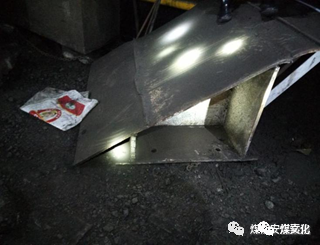 事故地點位于Z14-2W01綜采工作面回風(fēng)順槽,距工作面23.5m超前支架處。 事故發(fā)生地點的超前支架已卸載,頂梁距離頂板最小距離0.7m,最大距離1.6m,超前支架底座前2.5m處有從支架頂部滑落的三角形斜梁,長1.82m,寬1.5m,高0.7m,重約900kg,三角形斜梁底座有焊印,支架頂梁上無螺栓孔,支架與三角形斜梁靠上幫處有一鐵質(zhì)工具箱(見圖2);Z14-2W01綜采工作面存在19.1㎡的空頂范圍。其余詳見《現(xiàn)場勘查報告》。