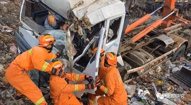 消防救援人員通過(guò)電話(huà)詢(xún)問(wèn)現(xiàn)場(chǎng)報(bào)警人了解到,該垃圾車(chē)在卸載垃圾時(shí)抬升過(guò)高,導(dǎo)致滑入垃圾池內(nèi)側(cè)翻,有1名人員被困。