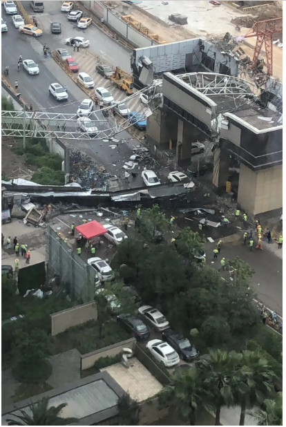 大臂造成非常嚴(yán)重的交通事故,下面來看履帶吊車身這邊的工地現(xiàn)場(chǎng),從視頻上看,疑似是地面塌陷造成的事故(目前具體事故原因還在調(diào)查)