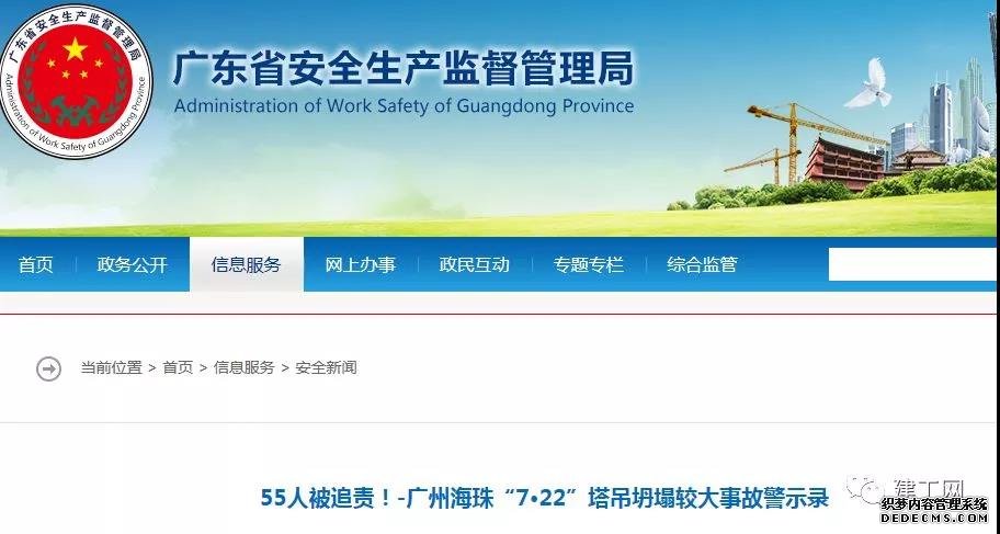 5月15日,廣東省安全生產(chǎn)監(jiān)督管理局官網(wǎng)發(fā)布《廣州海珠“7·22”塔吊坍塌較大事故警示錄》,將該事故調(diào)查結果及相關信息向公眾發(fā)布。