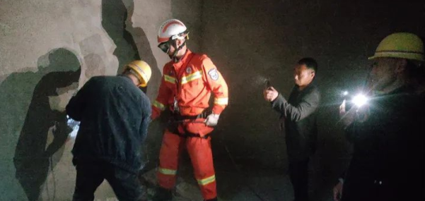 “在建居民樓為框架結構,墻壁尚未硬化加固處理過,可否比照兩人被困點,從屋內向外鑿出一個洞來,將他們救進來?”救援現(xiàn)場,有人提出了一個大膽的想法。后經綜合評估商定,現(xiàn)場救援人員覺得此方案可行。