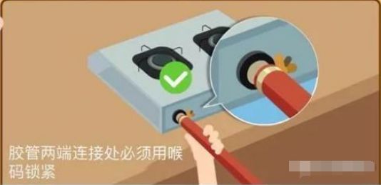 請(qǐng)使用專用燃?xì)饽z管,長(zhǎng)度不超過2米、使用時(shí)間不得超過兩年、無老化破損的情況。膠管與氣瓶減壓閥、灶具、熱水器的接口處必須加裝管箍鎖緊,防止因膠管松動(dòng)出現(xiàn)煤氣泄漏。
