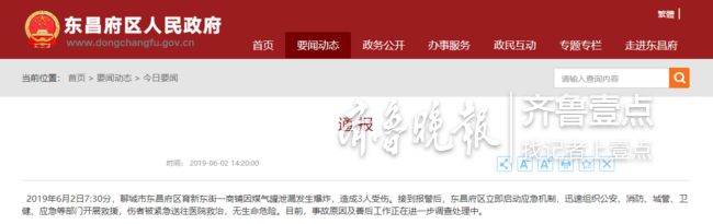 6月2日下午2點(diǎn)20分,東昌府區(qū)人民政府發(fā)布《通報》稱,2019年6月2日7:30分,聊城市東昌府區(qū)育新東街一商鋪因煤氣罐泄漏發(fā)生爆炸,造成3人受傷。