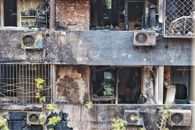 該小區(qū)4號(hào)樓1單元101的劉先生家則基本上化為灰燼。記者在他家看到,墻壁被燒成焦黑色,地上沉積著到腳踝的灰燼,整個(gè)房子被燒成毛坯房樣?!吧嘲l(fā)、柜子這些大件物品都沒有了,廚房、衛(wèi)生間都是玻璃的,也都燒化了,還有一些字畫?!眲⑾壬f,家里藏有不少洋酒等,損失慘重。