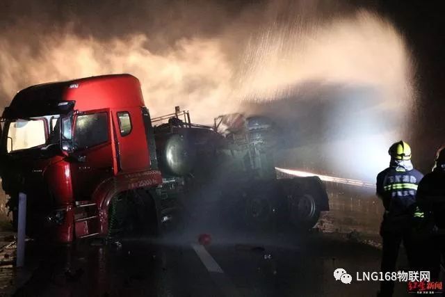 消防救援人員介紹,由于事故車輛為LNG(液化天然氣)動力,事故導(dǎo)致LNG氣罐閥門變形泄漏,且LNG儲存罐處于滿載狀態(tài),如發(fā)生爆炸燃燒后果不堪設(shè)想。根據(jù)現(xiàn)場情況,救援人員決定采取放空稀釋的方法進(jìn)行處置。隨后,救援行動展開,一是高速交警立即對該路段進(jìn)行封鎖,實(shí)施現(xiàn)場警戒;二是消防救援人員利用開花水槍、泡沫槍分別對氣罐泄漏點(diǎn)及周邊進(jìn)行稀釋覆蓋,防止發(fā)生次生災(zāi)害。同時(shí),救援人員調(diào)集大型吊車和裝載車對事故車輛進(jìn)行起吊拖離。