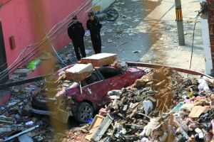 昨日,民*在爆炸現(xiàn)場(chǎng)進(jìn)行調(diào)查。