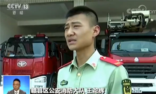 5月23日下午3點多,江西省贛州市贛縣區(qū)城南大道的濱江花城小區(qū)有一居民樓突發(fā)火災(zāi),現(xiàn)場熊熊大火,直冒濃煙,接到報警后,王龍輝和隊員們迅速趕往現(xiàn)場進行滅火。
