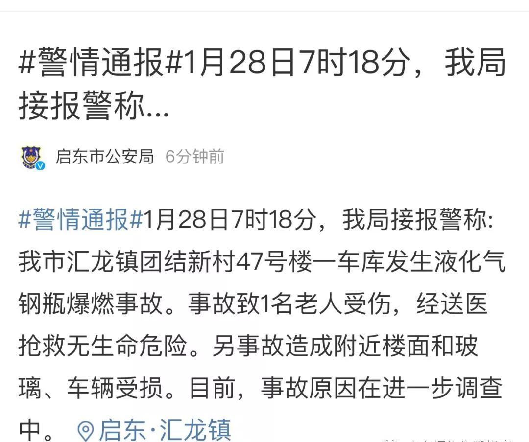 啟東團(tuán)結(jié)新村一車庫發(fā)生鋼瓶爆燃事故 一老人受傷!
