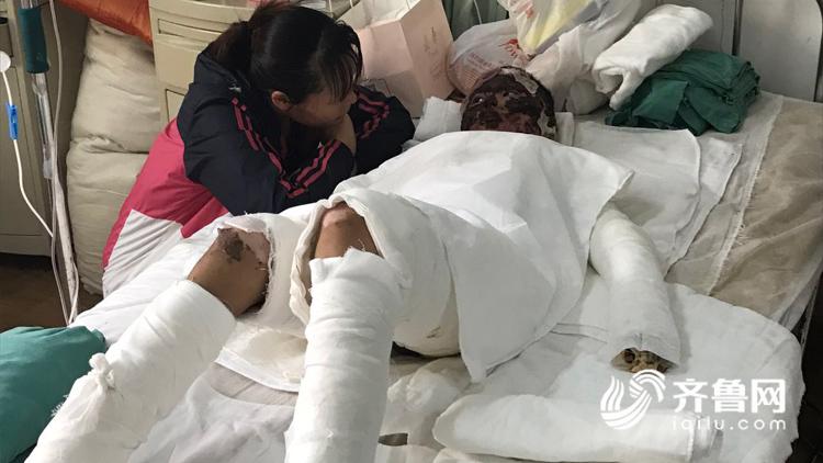 李慧霞介紹說:“9月10號液化氣泄漏,引起他父子燒傷,然后送于高密市人民醫(yī)院,結(jié)果高密人民醫(yī)院說是病情嚴重沒接收,然后轉(zhuǎn)入濰坊市人民醫(yī)院,醫(yī)生診斷說孩子的父親是90%燒傷面積以上,孩子是40%以上的燒傷面積?!?/div>